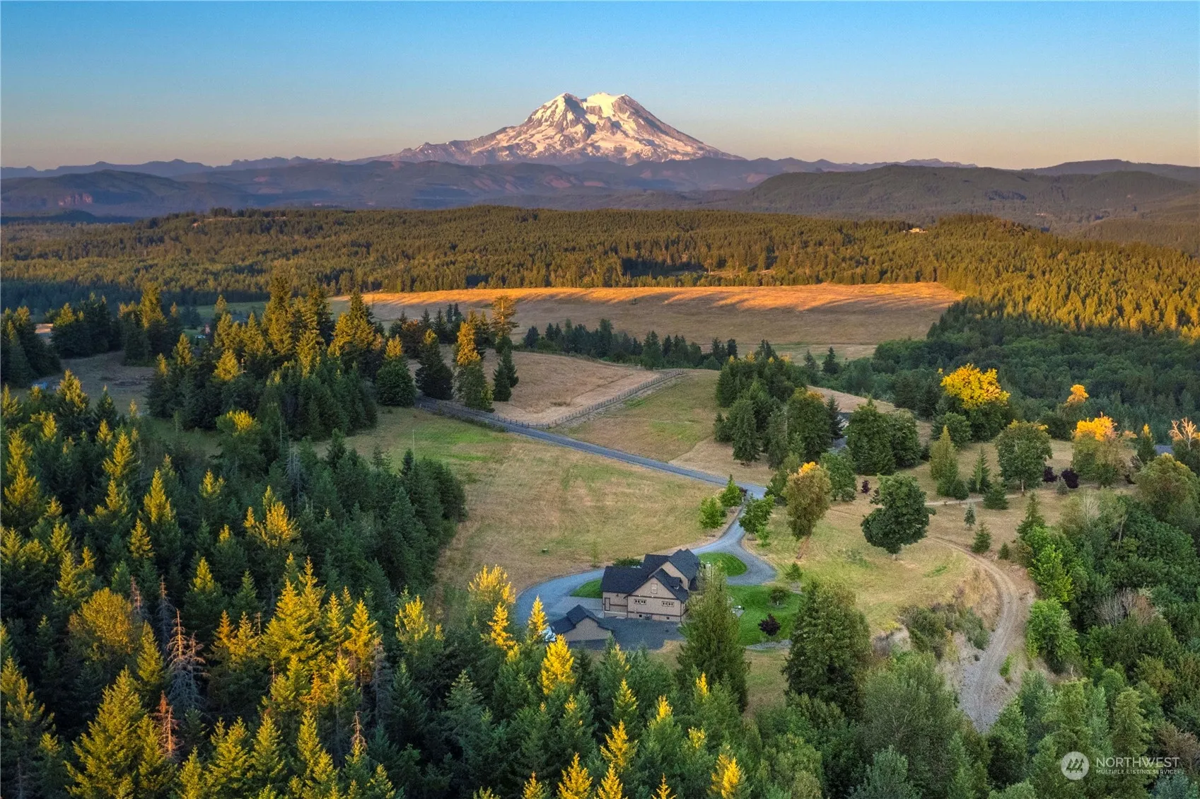 Custom legendary home built on 20 acres of generational wonderland & unreal views. 5218sf 5bed, 4.5bath w/ his & hers master on the main has all the high end comforts. Custom tile, woodwork, heated floors, radiant / heat pump, newer roof, windows, fireplaces, built-in movie theater, wet bar & sauna. Immaculately cared for home with homey feels in every room. Spectacular views of Mt. Rainier, the valley, Nisqually River. Incredible wooded trails winding through old growth timber w/ river access. High ceiling 3+ bay garage & detached garage. Plenty of room to build a horse barn, shop or stables for equestrian lovers. The comforts of a private gated community makes the grandeur of this property epic in every sense. Wake up to wildlife!