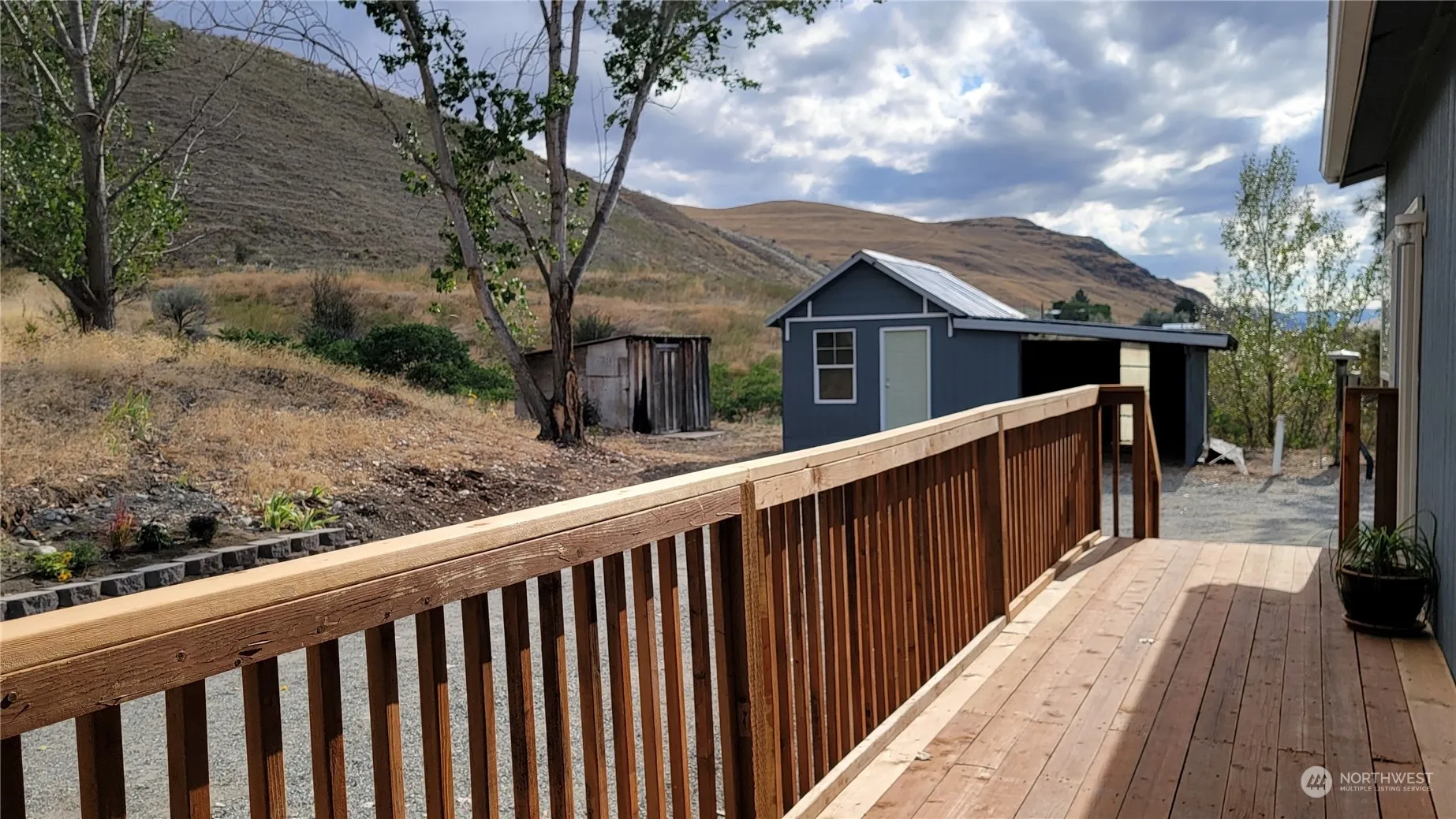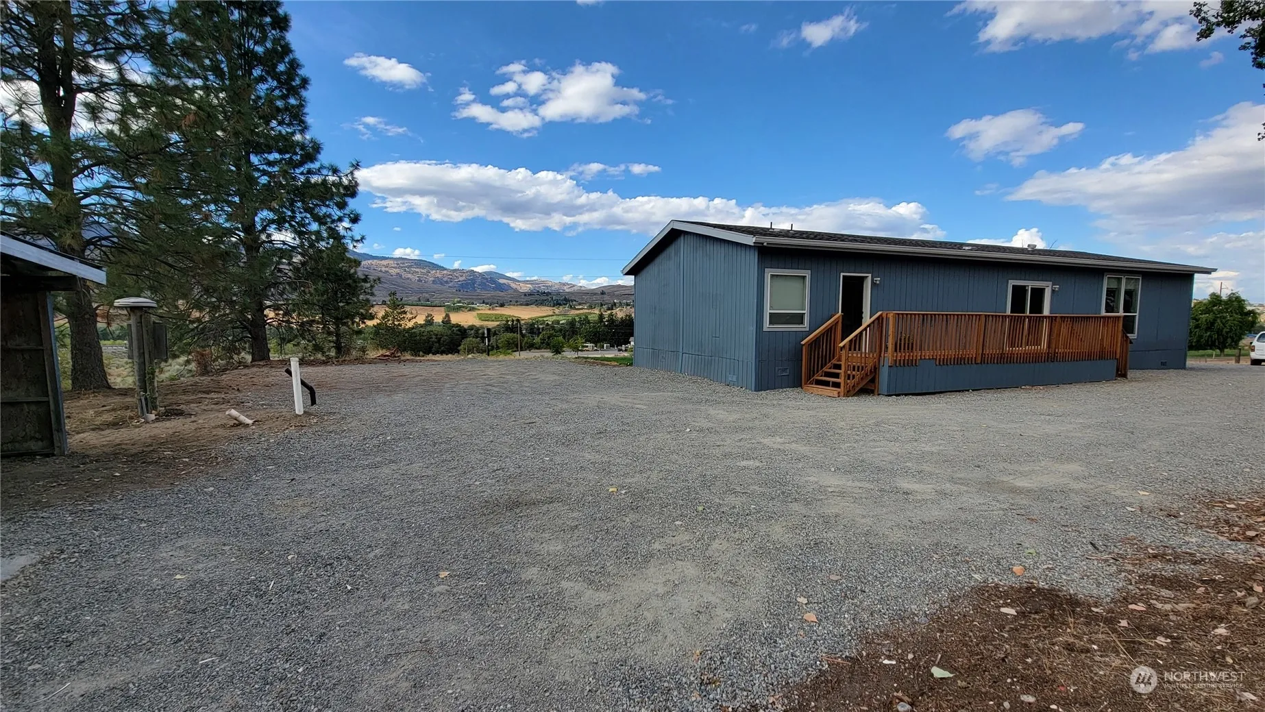 Newer doublewide situated on 2 acres just outside city limits of Okanogan. Built in 2016 but not sold until 2019, only lived in for 3 years. Excellent condition, granite countertops, nice backsplash. Sliding door in back leads to private deck facing toward wide open wilderness. Very private and yet very close to town. New vinyl plank flooring in the kitchen/dining room. Includes all appliances. Has ceiling fans in each bedroom and living room. Underground sprinkler system for the lawn. Detached carport which is attached to what was once a small house but is now used for storage, could possibly be 4th bedroom. Very nice property with plenty of room for your animals.
