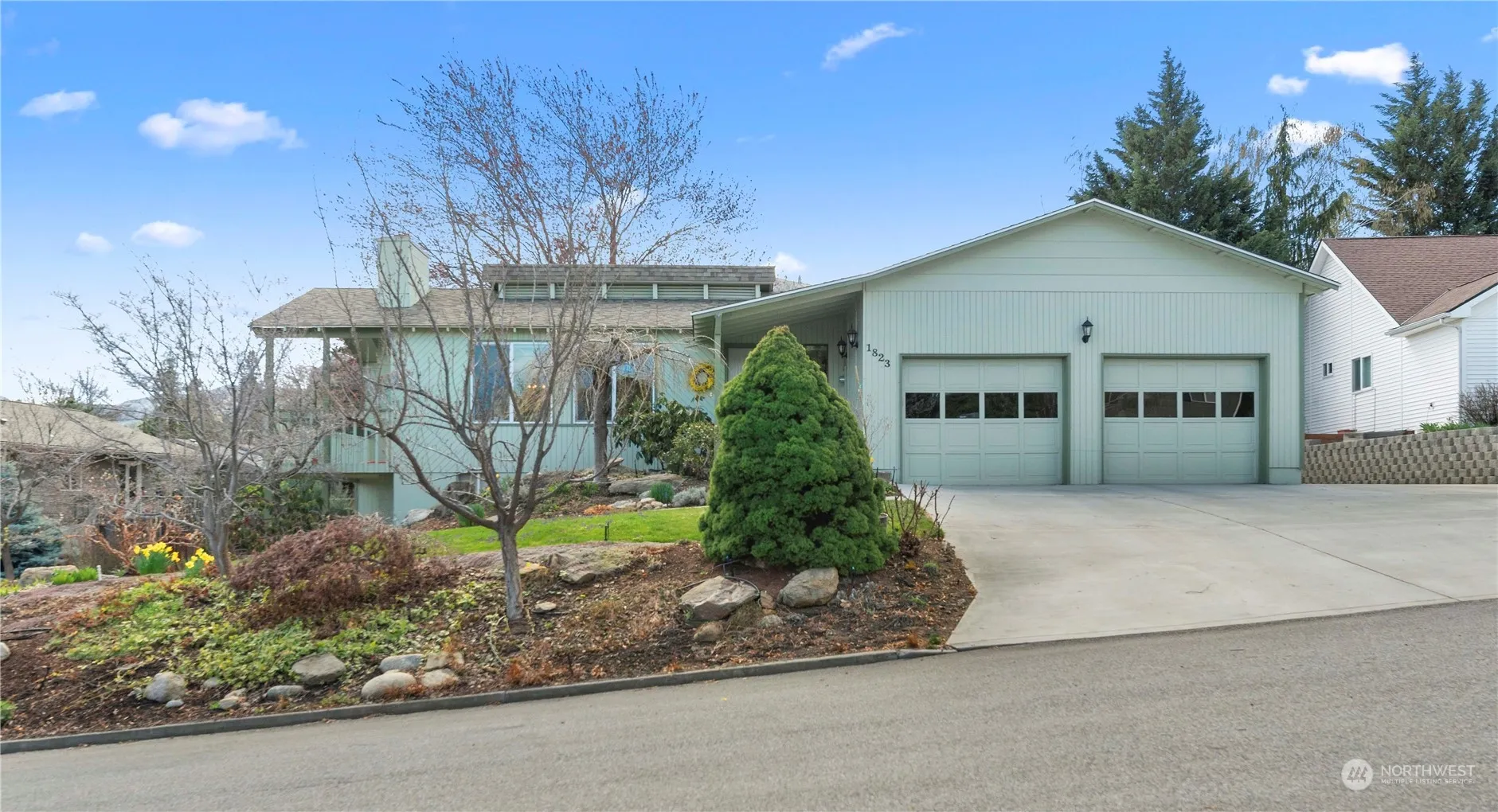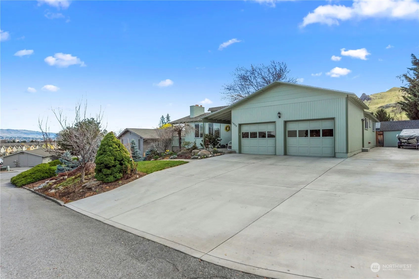 Sun drenched and spacious, this 4-bedroom, 1 full bath, and 2 3/4 bath daylight rambler boasts a charming sunroom/family room adjacent to the dining area. Featuring a spacious laundry room located on the main floor, extra deep RV and boat parking, and abundant storage space. The private fenced backyard has mature landscaping, a relaxing hot tub, and a garden area complete with a composting area. Enjoy outdoor gatherings on the abundant decking, while benefiting from the recent upgrades including newer vinyl windows, newer LVP flooring, and siding replaced with new paint in 2016. Nestled in a serene cul-de-sac setting, this home offers breathtaking mountain and territorial views. This home is truly a must see gem!