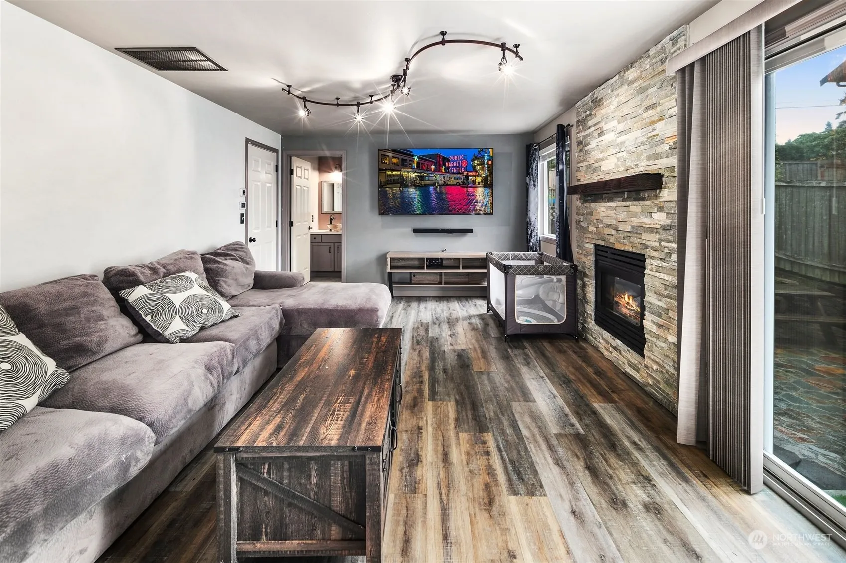 Welcome home! Charming residence near Boeing, Naval Station Everett, and picturesque Lake Stevens. Enjoy vaulted ceilings, a cozy gas fireplace, and a spacious walk-in closet. Large rooms and an open-concept layout enhance the living space. Step outside to a sizable cedar deck and flagstone patio in the fully fenced, low-maintenance backyard. Catch glimpses of Everett and the water from the deck.