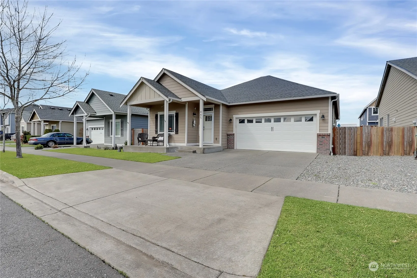 Desirable rambler located at the Foothills of Mt Peak! Charming entry w/bench seating & chandelier. Recently updated LVP floor & kitchen w/Quartz Counters & stainless steel appliances! Lg Island w/breakfast bar overlooking open great room. Cozy gas fireplace w/custom mantel! Primary suite w/full 5-piece bath, LVP floors, double vanity, soaker tub & Lg walk-in closet w/barn door. Numerous upgrades throughout: shiplap walls, exterior lighting, generator hook-up & A/C! 2 add’l bdrms w/over-sized windows. 2nd bath offers dual vanity & Lg tub/shower combo. Lg Patio w/gazebo; great for entertaining! Hike to Mt Peak from the front porch. Only minutes to historic downtown Enumclaw or skiing at Crystal Mt. 2-car gar & Award winning Enumclaw Schools.