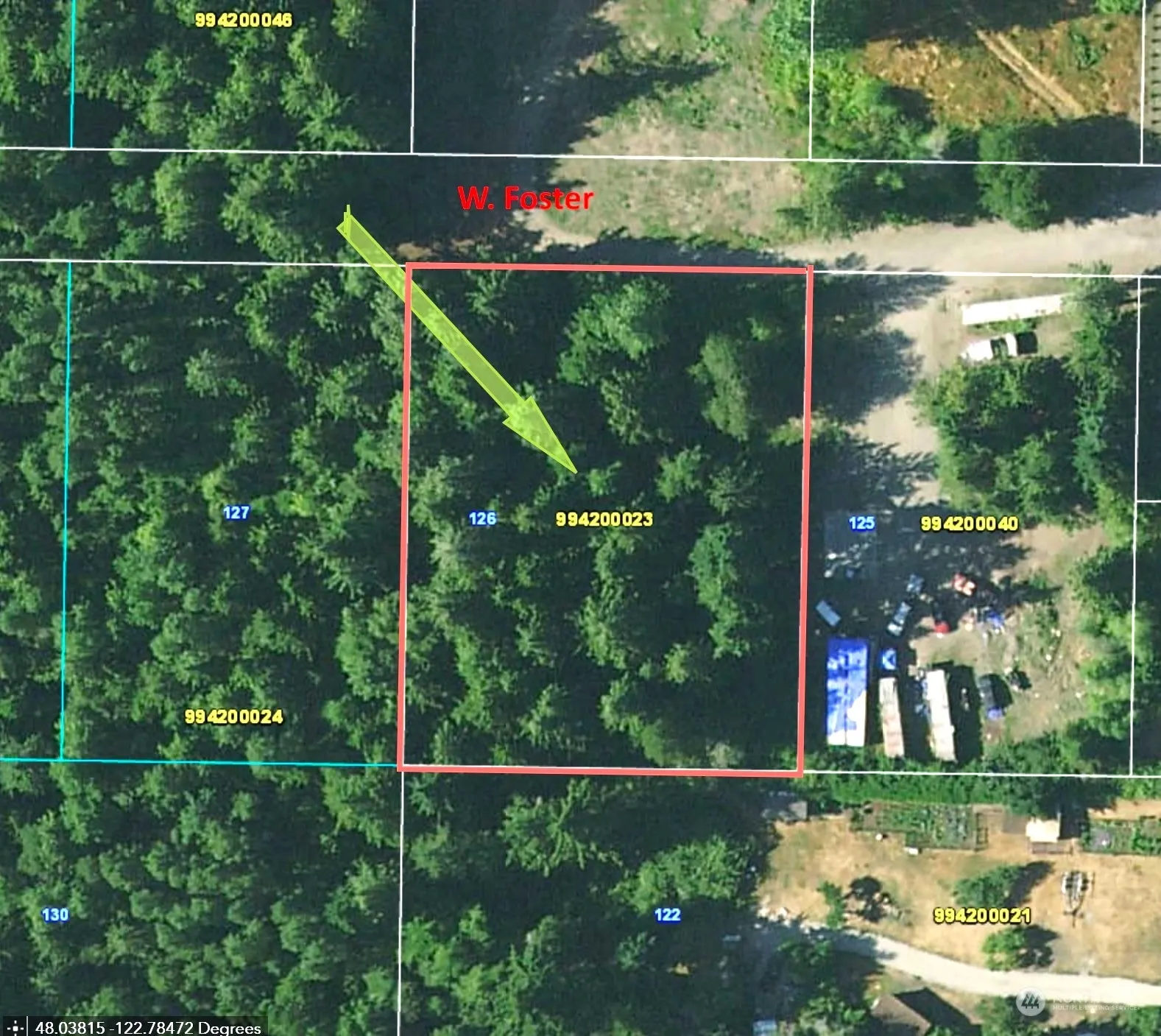 Nearly one acre of unspoiled forest just off Rhody Drive! Beautiful second growth cedars and a gorgeous open understory makes for a magical location to carve a homesite. Located at the end of dead-end Foster St., this site offers a unique opportunity for a homesite development in an untouched tiny, private forest. Cut just enough to let in more light, or simply enjoy the privacy under the giant cedars! The new owner would need to install a septic system and explore connecting to PUD water and power, which are at the street. Buyer to verify all.