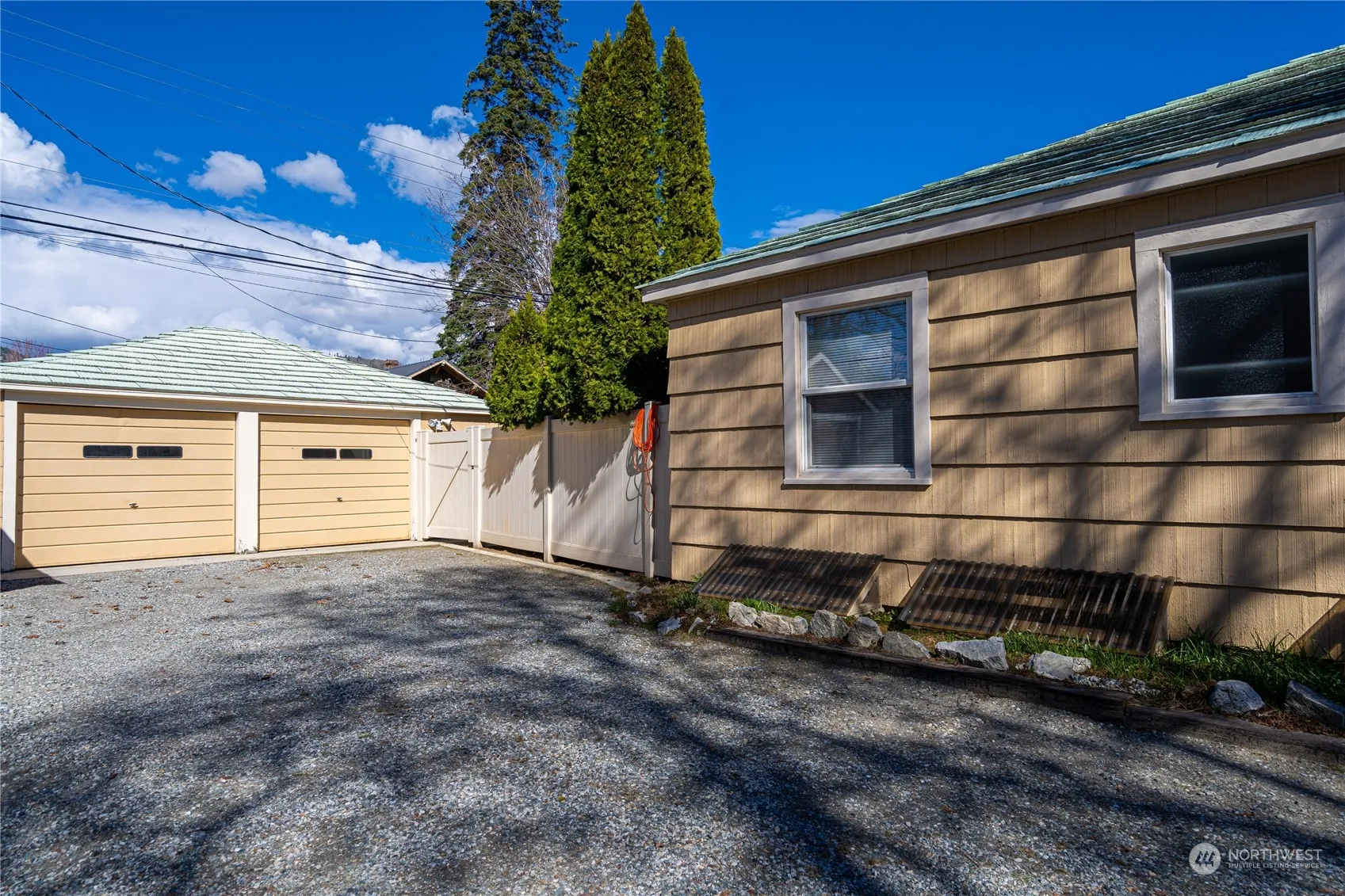Welcome to this charming downtown Chelan home with boundless potential! Nestled in a prime location, its Downtown Mixed Use zoning opens up endless possibilities – from long or short-term rentals to a versatile workspace. Upstairs boasts 2 bedrooms and 1 renovated bath, while the basement offers an additional living area, a half bath, and convenient washer/dryer access. Step outside to well-maintained landscaping providing space for outdoor activities or expansion and a detached garage, offering two parking spaces for added convenience. Enjoy nearby restaurants and shopping while savoring the tranquility of the almost 3-lot property. Sold as is.