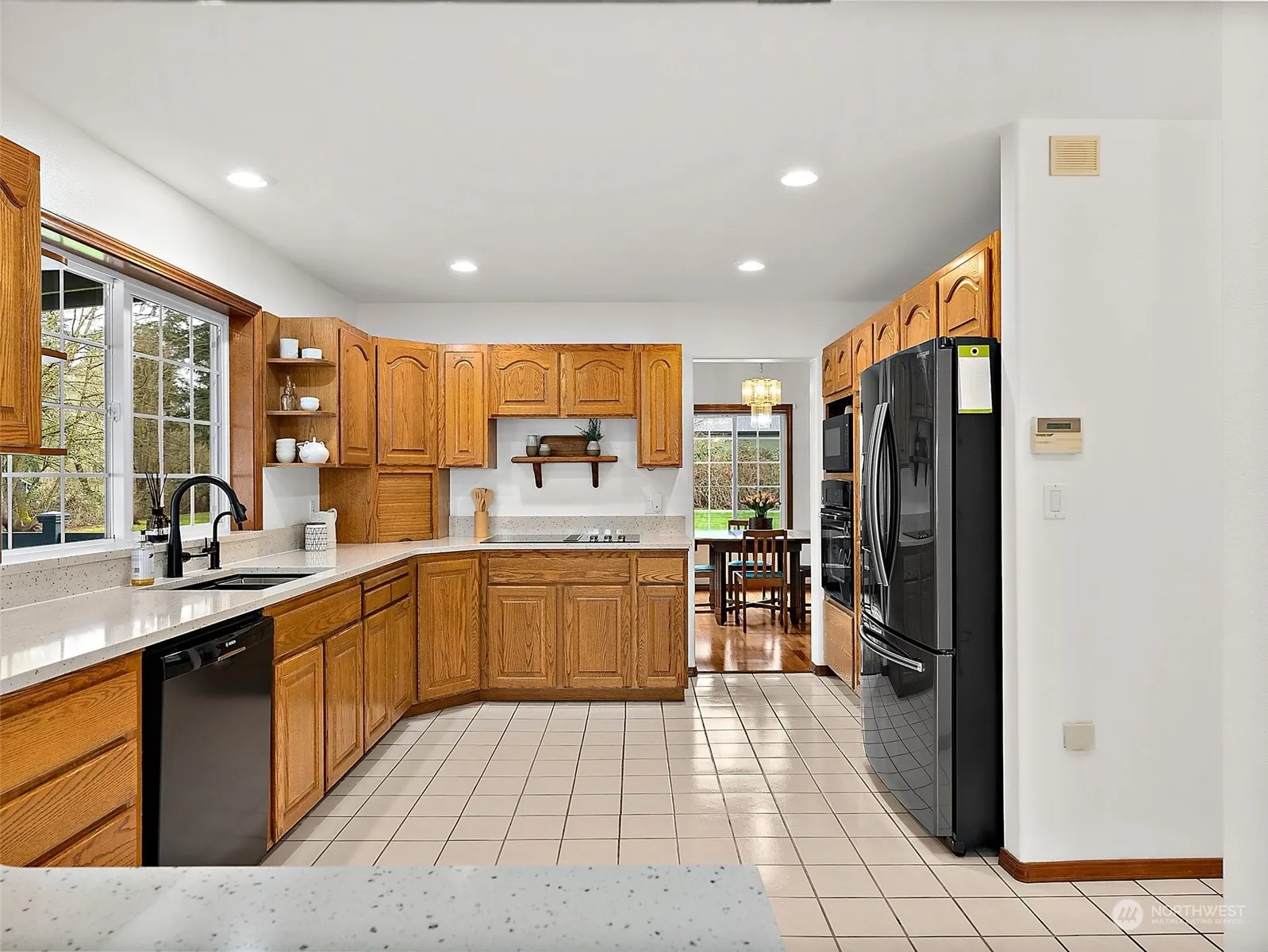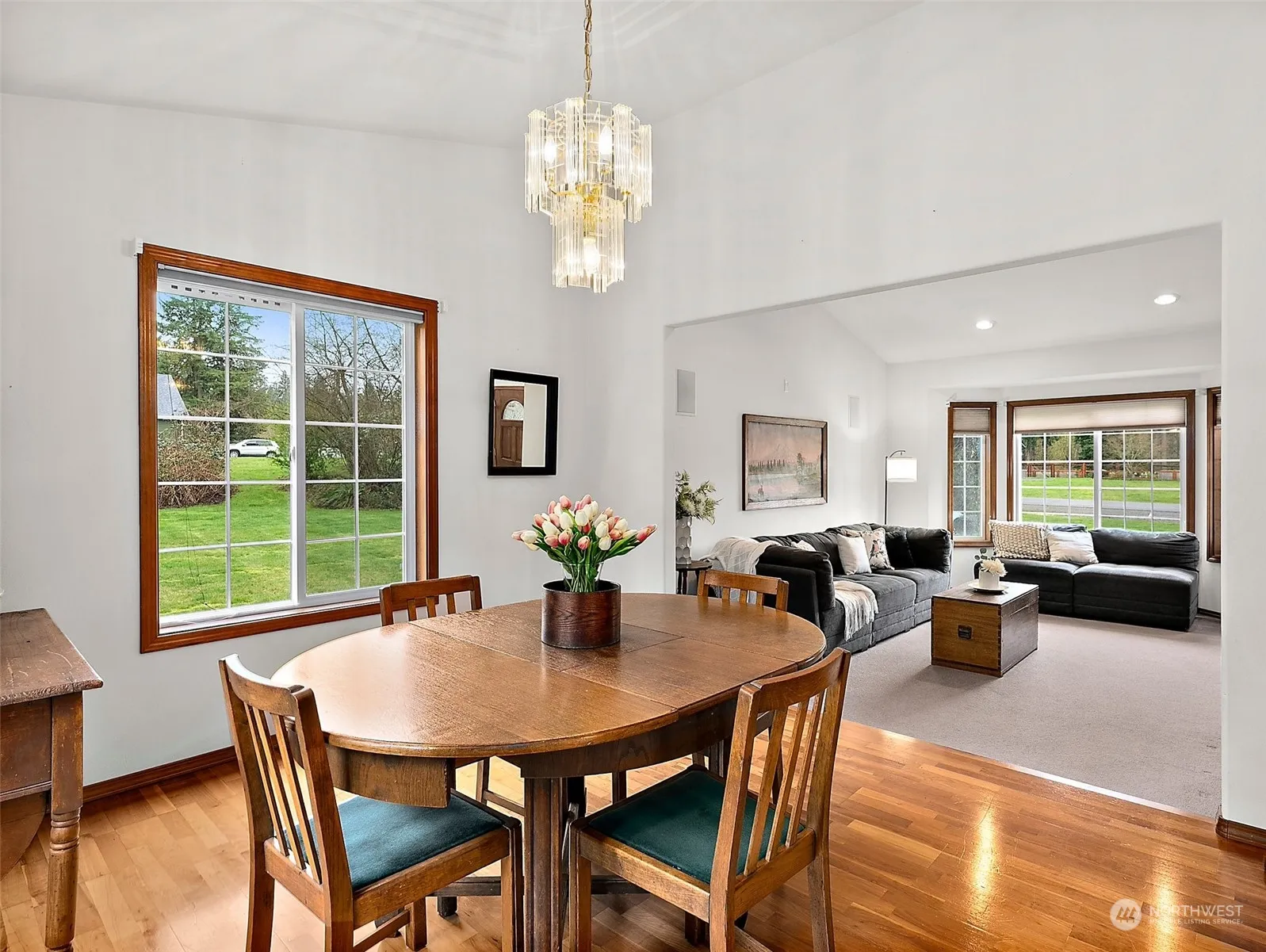 Impeccably maintained 2,570 SF, 4-bedroom, 2.75-bathroom home on a dry .87-acre lot. Kitchen w/ Quartz countertops, newer appliances, tile floor & 2 pantry closets. Vaulted living & dining rooms. Large main floor bedroom plus 3/4 guest bath on the main. Living room w/forced air fireplace insert, & French doors to LG covered back deck off the adjacent eating area. Spacious primary suite w/ balcony, walk-in closet, & beautifully updated private bath. Fully modernized 5-zone radiant floor heat system provides recirc on demand domestic HW. 950SF attached 3-car garage. 40’x 45′ shop w/ 2- 12′ tall RV doors, mezzanine storage, heated office, 3/4 bath, laundry, kitchenette & loft bonus space. New roof in 2021 on home & shop. Xfinity connected.