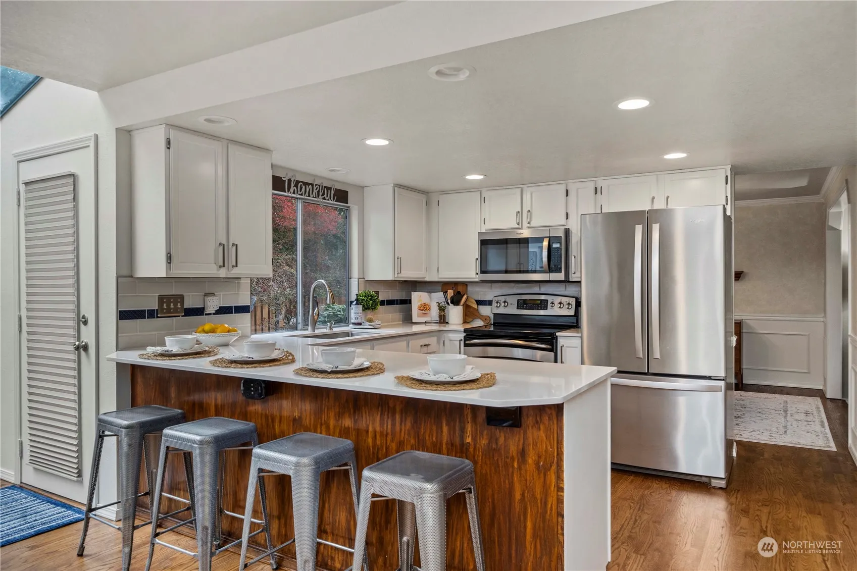 This gorgeous 4+ bed, 2.5 bath home stands out among the competition. Situated on a spacious private lot backing up to a greenbelt this lovely home is a real gem. Bonus / flex room upstairs can be used as a 5th bedroom. Updates throughout include fresh paint, flooring, quartz kitchen counters, appliances and more. Great commuter location close to Dash Point Park and Redondo area. Kitchen has an open design, abundant natural light with bar area and butlers pantry that is just charming. Experience the seamless flow and quaint designated spaces throughout this residence. Custom expansive deck for entertaining & enjoying outdoor living all year long. Flat usable fully fenced yard w/ stylish landscaping is sure to impress. Call now to tour!
