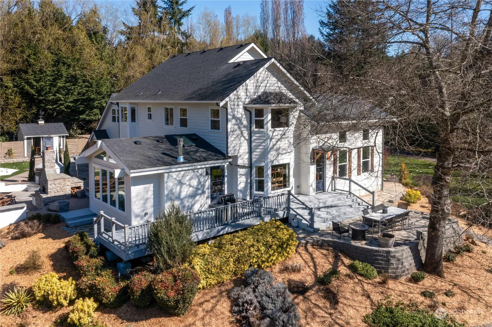 Experience unparalleled luxury & tranquility in this magnificent Gig Harbor Estate! Nestled on 4.3 acres, this breathtaking property boasts a stunning 4666 SF home including apartment above the garage. The family rm is a true showstopper, featuring soaring 25-foot high ceilings w/open beams. Gather in the spacious kitchen, complete with large center island & beautiful brick fireplace. Tile accents add a touch of sophistication to every corner of the home. For equestrian enthusiasts the facilities include a 90×180 outdoor arena, 14 stall stable with wash rack, 3 grooming stations & 2 heated tack rooms! Mature landscape offers a seasonal creek & serene wildlife creating a peaceful atmosphere. This is more than just a home—it’s a lifestyle!