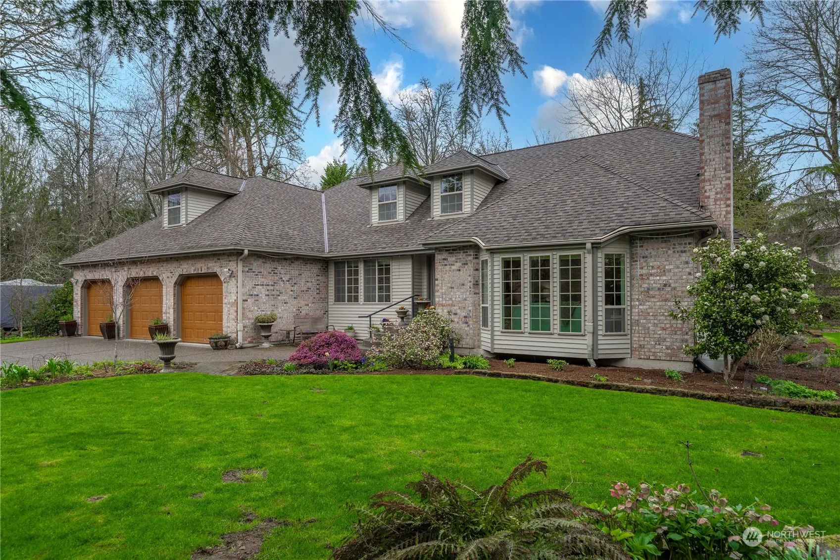 Meander through beautiful Winterwood Estates to this .75-acre master gardeners’ paradise at the end of a quiet cul-de-sac! This well-loved home celebrates the seasons with an everchanging landscape of color! Cedar & brick, large picture windows, & 3-car garage/shop will pique your interest. Enter to high vaulted ceilings in the fireside living room. The circular floor plan guides you to the formal dining room, & a greatroom style kitchen that opens to the family room with cozy wood stove. The large primary suite w/5pc bath, laundry, & private office are also on the main floor. Upstairs are 2 add’l bedrooms, a full bath & a catwalk balcony. Above the garage find a wonderful artist studio. Enjoy patio BBQs & garden beds w/easy care sprinkler.