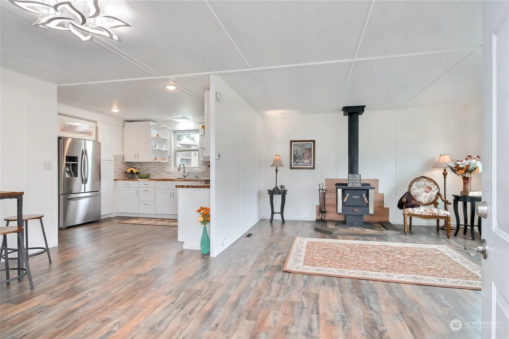 We have a quality remodeled beauty ready for you! Must see this 2 Bedroom, 1.75 Bath, 1200 Sq. Ft. well-maintained home! Features include new roof coating applied three years ago, new flooring, remodeled kitchen, new cabinets, newer fridge, dishwasher & gas range, new tile backsplash and countertop, new lighting, updated plumbing, gas newer heat, newer W & D, new paint inside and outside, remodeled bathroom with new shower, vanity & sink! Extras include double pane windows in nearly every window, a cozy wood-burning stove, natural gas to home, a breakfast bar, a large living room, a large shed, and much more waiting for you. This park is located minutes to Boeing, beach, ferry, shops, restaurants, medical, Alderwood Mall, and more!