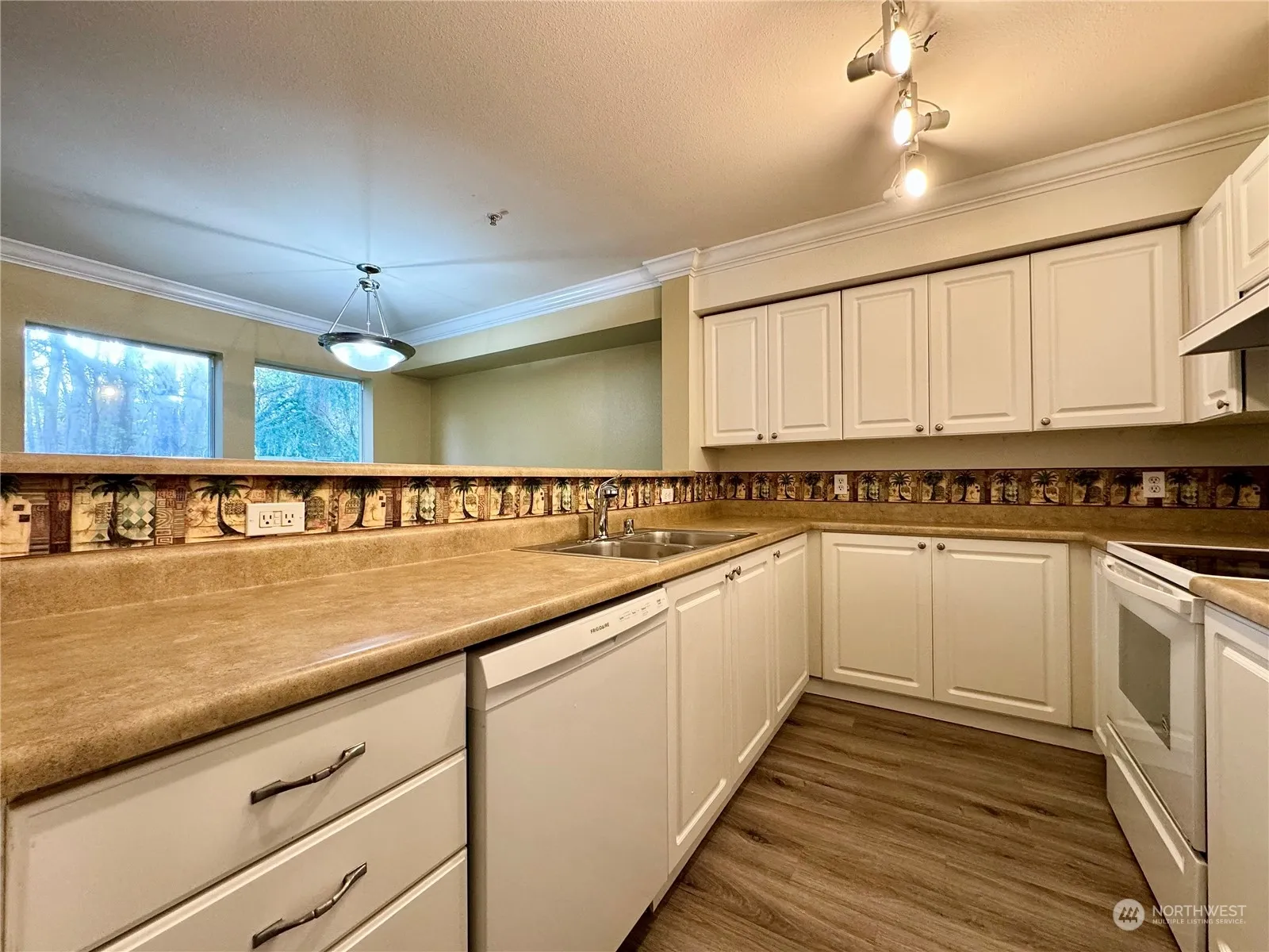 Beautiful 2 bedrooms, 2 full baths condo in a park-like setting with private view deck. Laminate flooring throughout, fireplace, crown molding and wallpapers accent. Spacious kitchen with breakfast bar and abundant cabinets for your storage. Primary suite with lovely full bath. Washer and dryer stay. Clubhouse has a fitness room, sauna, hot tub, tanning beds, and heated outdoor pool. Huge detached, covered garage for your car and storage.