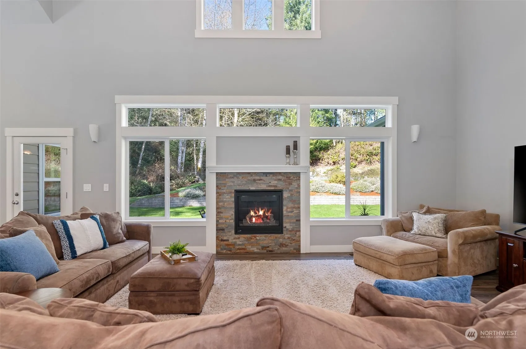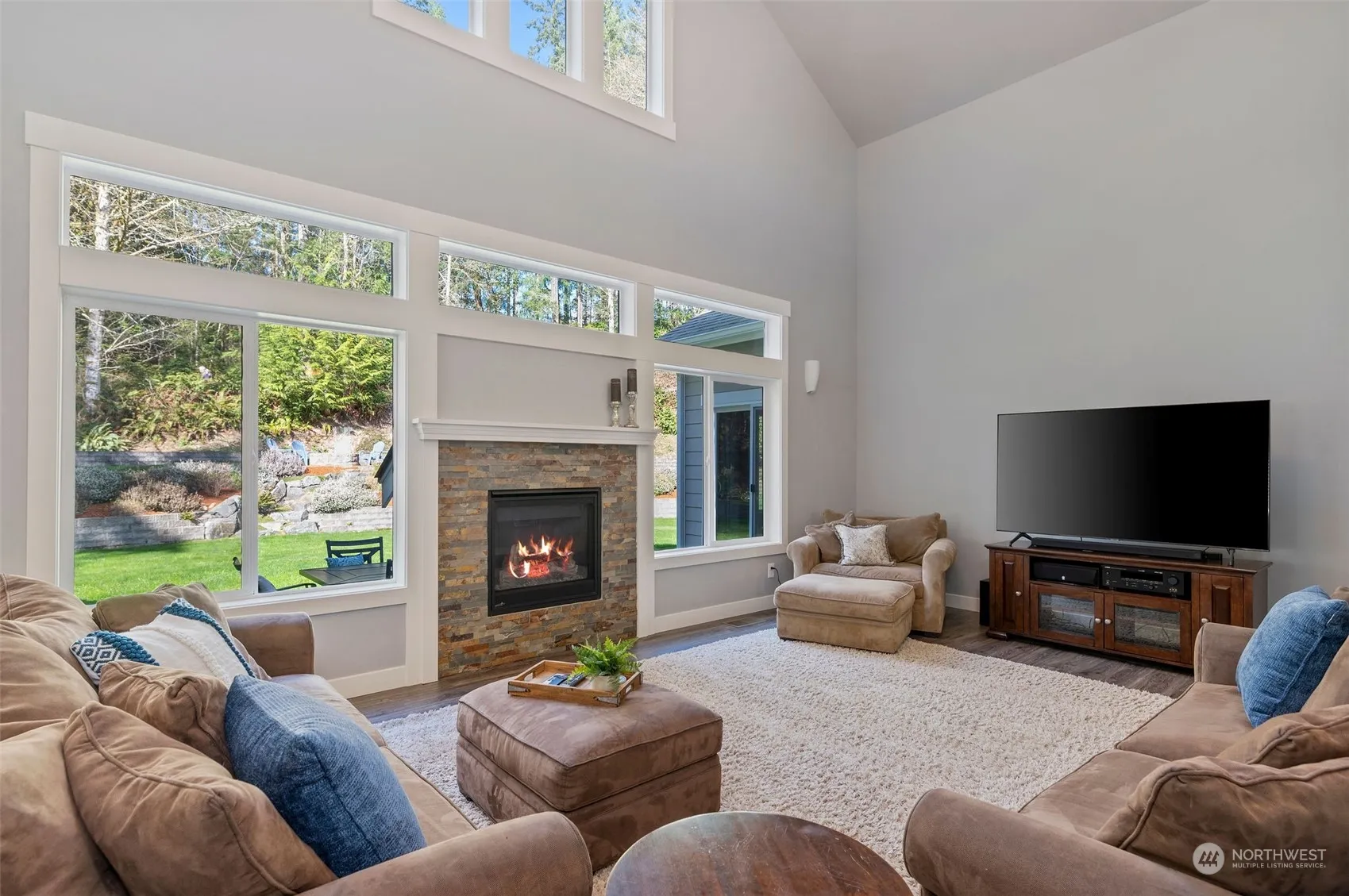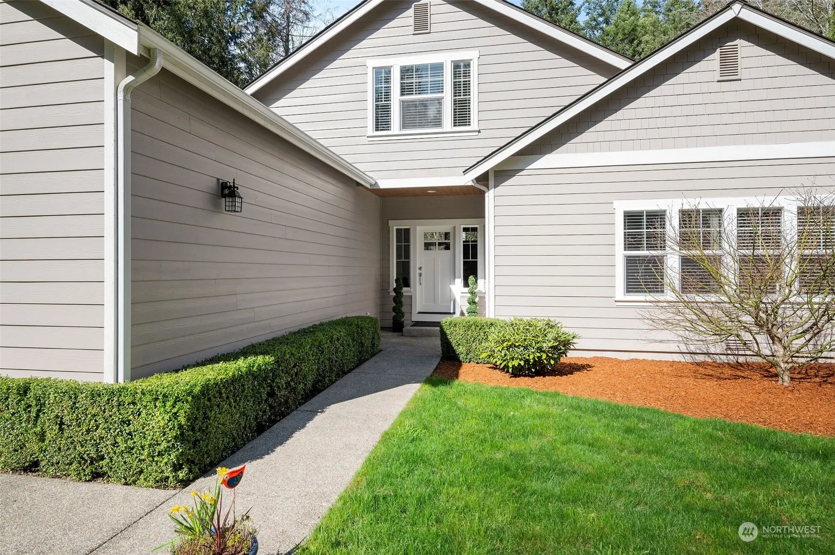 Highly sought after one level living with vaulted ceilings & abundant natural light. Easy open living space with spacious kitchen, dining & great room, lives like a brand new home. Designer kitchen features huge island, solid surface granite with tons of cabinet space. Retreat in the lovely primary suite with wall of windows over looking the back yard, it also features a well appointed bath with soaking tub, walk in closet & access to patio. Bedrooms are roomy with ample closet space. Luxury vinyl flooring is beautiful & functional, mud room/laundry & half bath off 3 car garage. Loft area perfect for WFH, game room or hobbies. Situated on a peaceful & private landscaped lot with lush green belt, patio, fire pit, room to play & entertain.