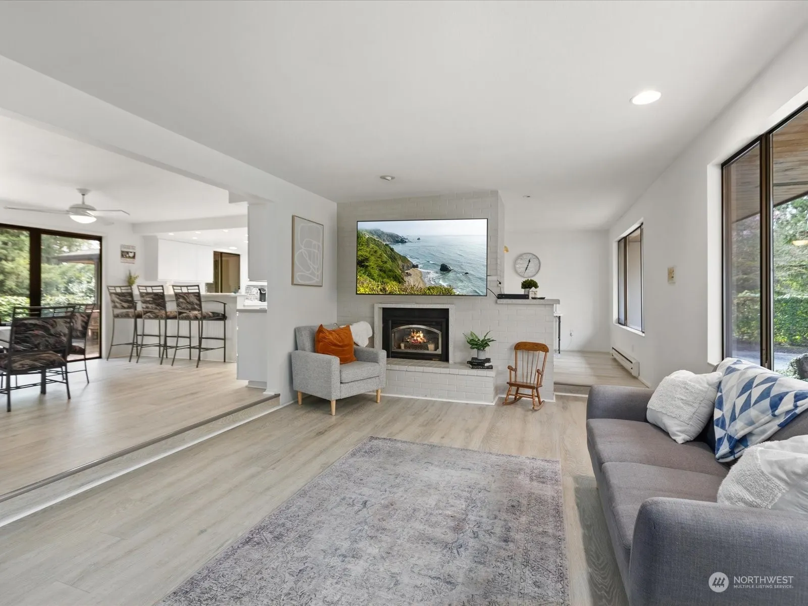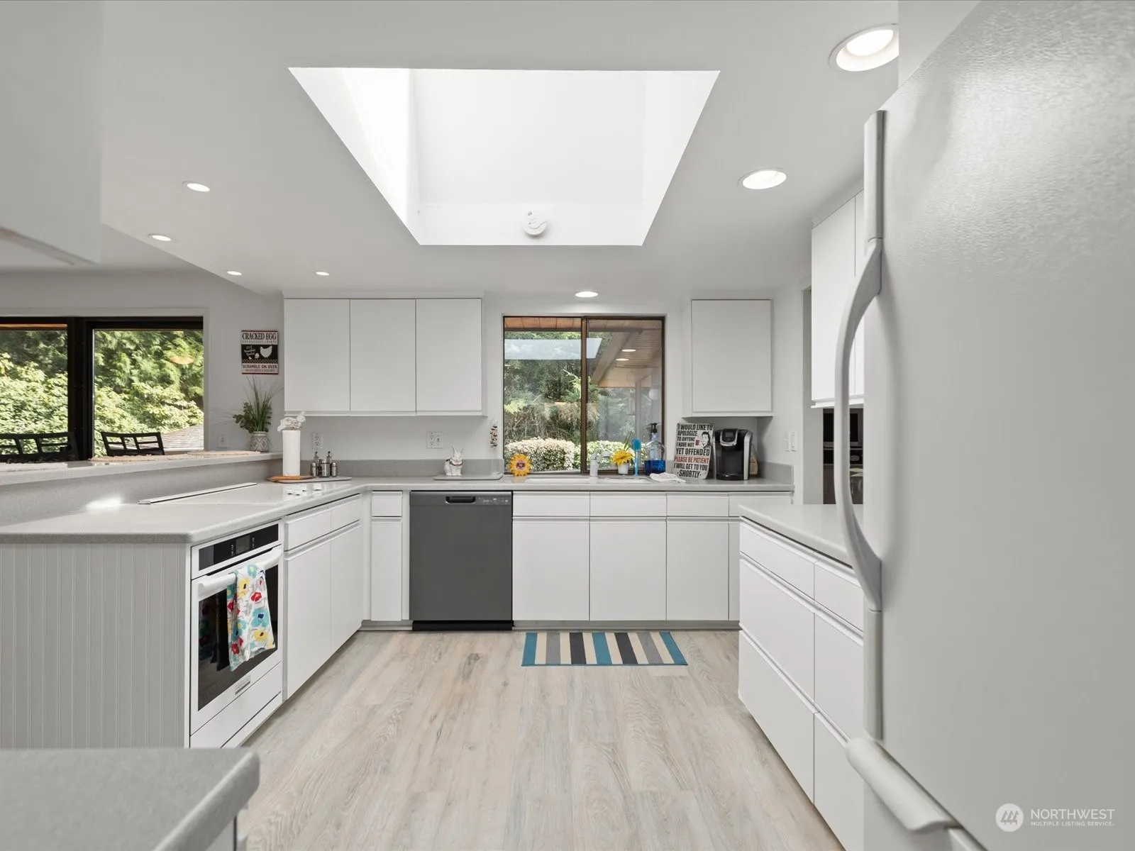 Remarkably updated 3-bedroom rambler tucked away on a large, private, park-like lot, just minutes from all amenities. Natural light floods this beautiful home and features many updates, including: new kitchen appliances and Corian countertops as well as new flooring throughout. Large living room is open to the dining area, kitchen and bonus room which can serve as a formal dining room or den/office, just bring your ideas! Large primary bedroom and spacious full bath.Tons of closet space throughout. Huge, entertainment-sized deck out back with a covered fire pit area, sport court & is wired for a hot tub. Beautifully maintained yards. 2 car attached garage plus tons of additional driveway parking. Roof replaced in 2012. An absolute must see!