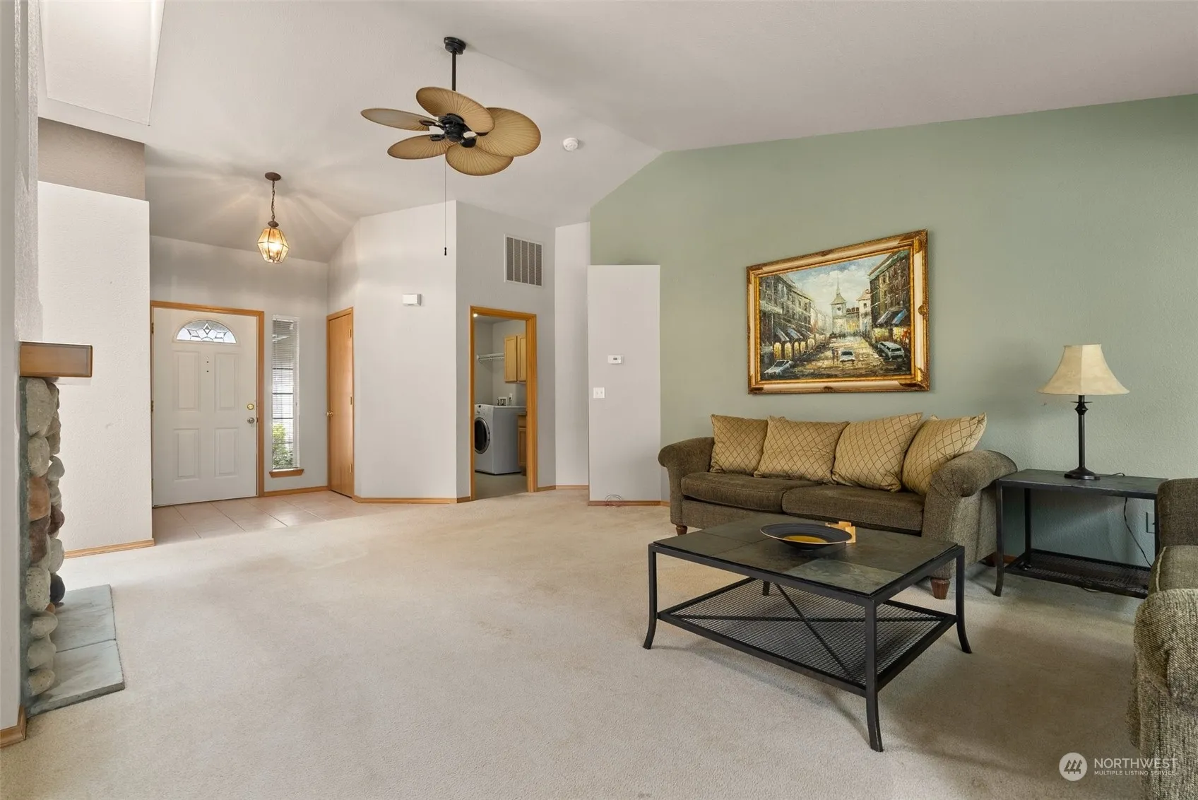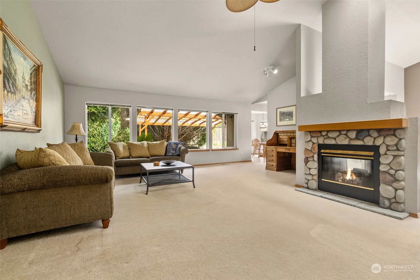 Open House April 27 CANCELLED Welcome to the stable community of Streamland Estates in Tumwater. Rare to find a home available in the neighborhood. Corner lot, partially fenced. Enter to LR with vaulted ceilings and 2-sided fireplace between LR and Family Room. Efficient kitchen with dining area, eating bar and all appliances. Open to Family Room with TV monitor on the wall that stays. Off the dining area is covered patio for year round entertaining and the fenced back yard. Two bedrooms and full bath off the Family Room. Mstr Suite is other end of the house.