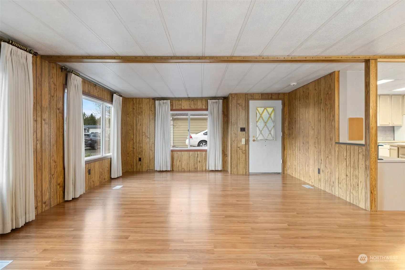Christmas Village: a 55+ community manufactured home park close to shopping, hospital and services. This home is 1536 sq ft with an open living/dining/kitchen area. Primary bedroom has its own bathroom (with tub and separate shower), and a large closet. 2+ car carport with a shed/workshop on one side of the home, and a covered patio on the other side. Partially fenced yard with a cleared space for a vegetable garden, lots of trees and shrubs, still easy to maintain. Seller is offering a floor covering credit of $2500 for the 2 bedrooms. Christmas Village has a clubhouse and small community park, community space for RV storage.