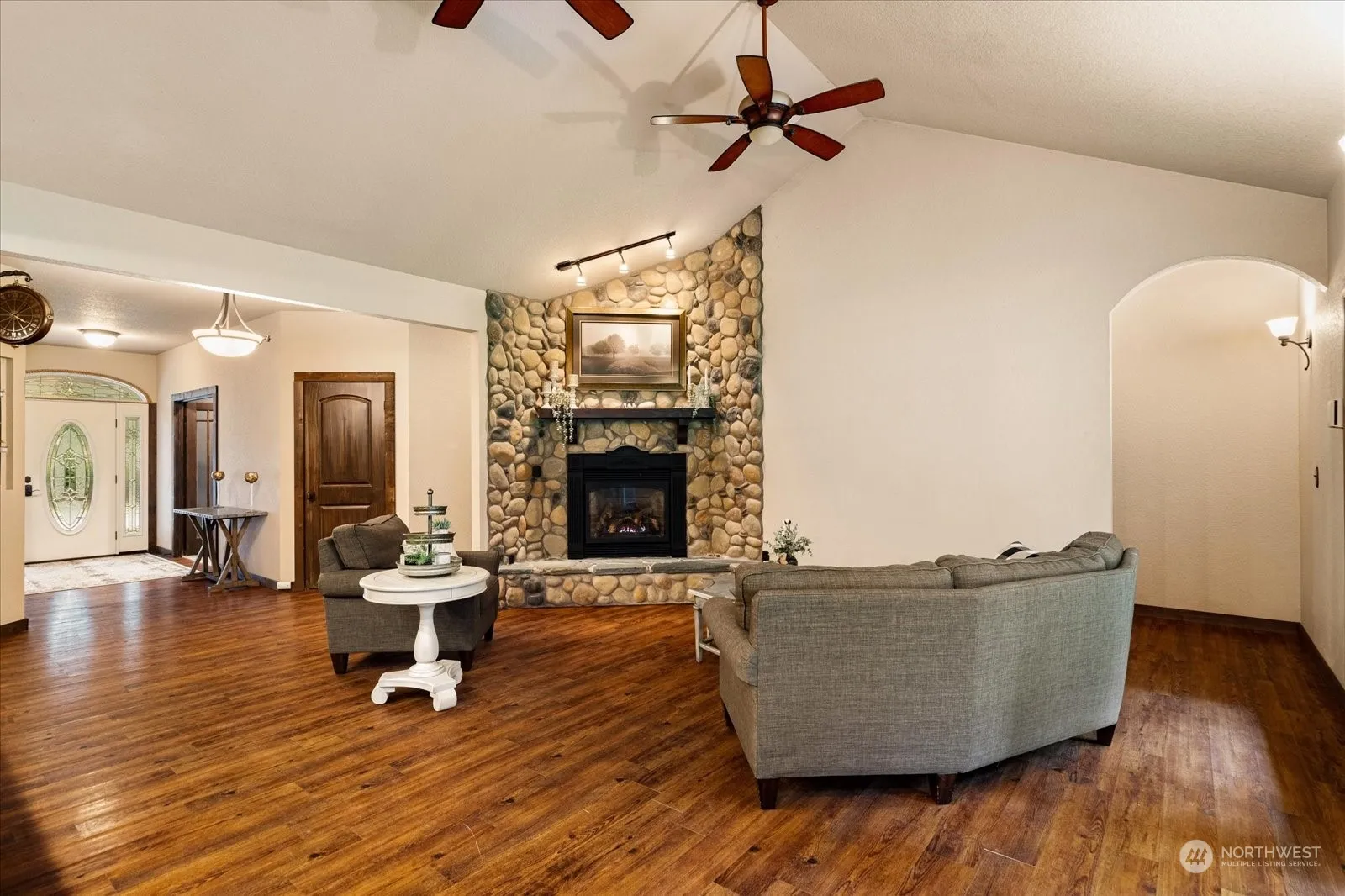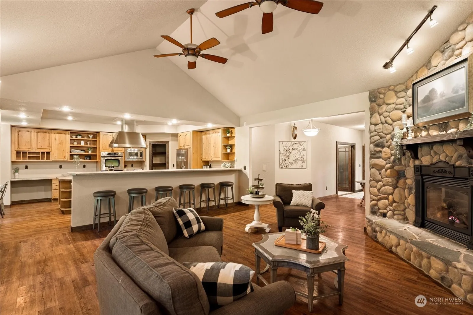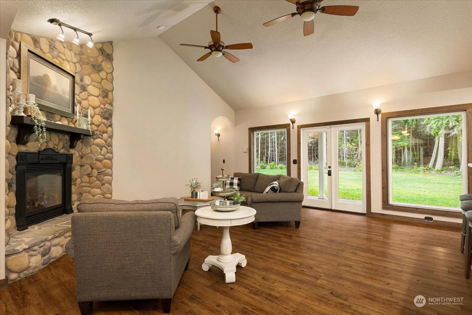 Amazing Private 5 acre Sanctuary on level dead end setting, near historic Coupeville. Excellent Quality. Country Charm, Comfort & Appeal. Lives like a Rambler plus upper Fam rm & Expansive Gym/Rec room. Nature surrounds you. Trails, Fire Pit, Play area. House= 4,214 SQ FT. Full Separate Living over Garage (736 sf w/ kitch,bed,bath,living rm=great multi-gen or rental$$). Spacious Home has soaring ceilings, wide halls, efficient radiant floor heat, newer tankless hot wtr heater, New carpet, brand new $ 30k septic system, Vac sys, Jack & Jill bath. Primary; lg sit area, walk-in, new dual sink vanity, quartz counters, oversize tub & dbl shower. Prof Chef kitchen w/ big hood, dbl oven, micro, propane stove, refer & pantry. Huge Gar/Shop(936 sf).