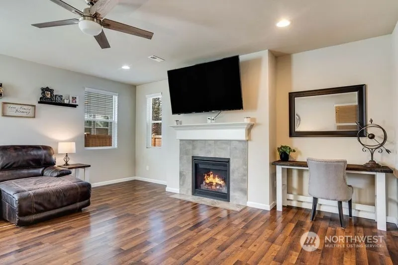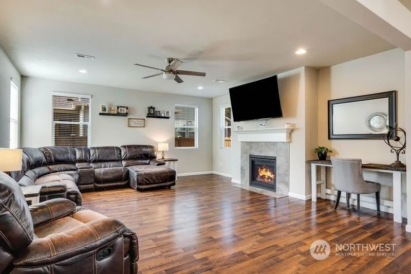 Don’t miss out on this highly sought after McAllister Park community, home. This beautiful well kept home greets guests with a charming covered front porch. The open main floor offers a large family room with a gas fireplace and gourmet kitchen with a large center island/breakfast nook. Enjoy your oversized primary suite and keep cool with new Air Conditioner, just installed. You’ll also appreciate your gas hook up on the large back patio perfect for entertaining. This home has a 2-car alley-entry garage. With a large field to run your pets or play frisbee golf! This neighborhood also has a community playground perfect for your little ones! Conveniently situated near I-5 with easy access to shopping centers and Joint Base Lewis-McChord.