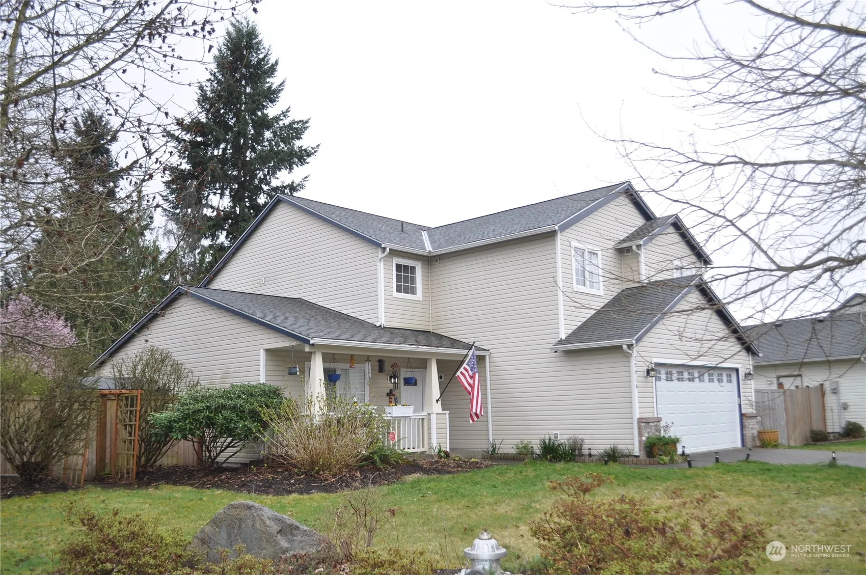Nicely updated home on large lot in sought-after Russellwood! Three bedrooms, 2.75 baths, modernized kitchen, dining room, living room and gathering room with cozy fireplace. Excellent outdoor spaces, with cover over patio, fruit trees, large garden space, and RV/boat storage inside the big back yard. Recent updates include exterior paint, new interior doors, new front door, newer appliances, gas bbq with its own gazebo, new fence, and new garage door. Property backs up to a private neighborhood park with a gate. Refrigerator in garage stays. Gun safe in upstairs bedroom negotiable. Functionally it is a 4-bedroom house; however septic approval is for 3 bedrooms.