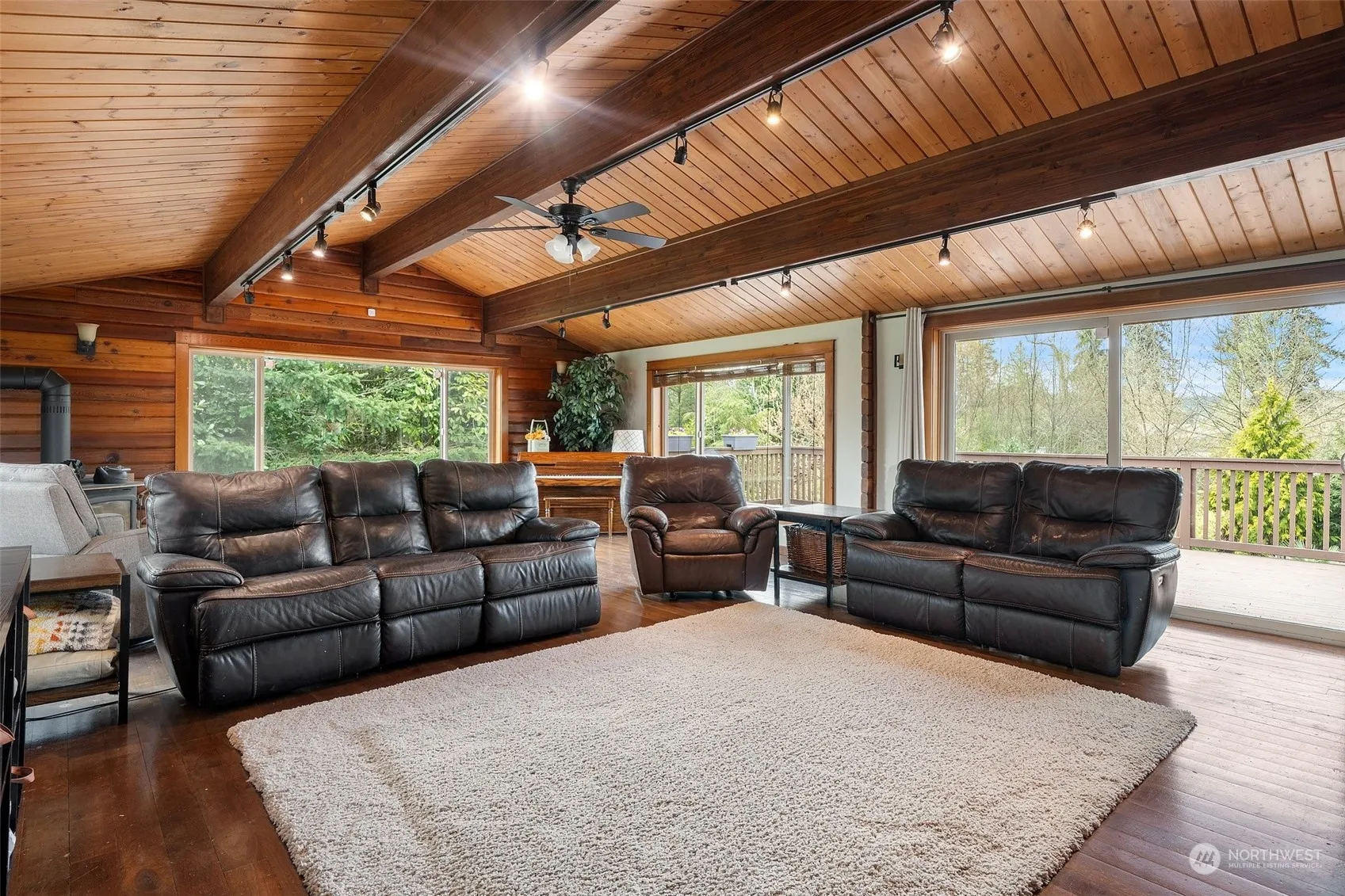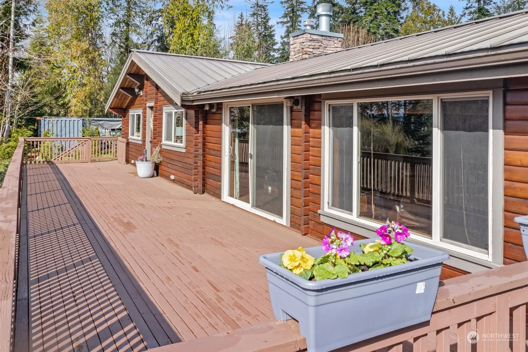 Welcome home to your custom built, cedar Log Cabin with ocean and mountain views! Luxury home, beautiful cabinetry, granite countertops, wood and travertine flooring, decorative beams, multiple fireplaces, an expansive deck that runs the entirety of the front of the home and a large entertaining deck in the back. Primary bed with bathroom suite. Additional bath off of other bedroom. Easy access daylight basement, ideal for multigenerational living, home office or Mother-in-law suite. In the backyard you will find a fire pit, raspberries and strawberries in raised garden beds. Front yard boasts of a natural setting, fruit trees, well house and shed. You will never want to leave home! 10 min. to Kingston ferry, 5 min to grocery store.