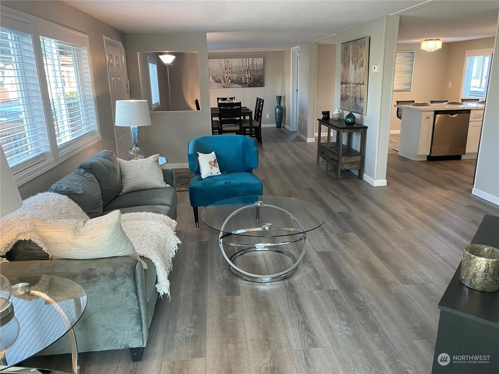 Waterfront, Waterfront, Waterfront! Watch ducks swim in Chambers Lake while enjoying morning coffee or BBQ from your covered Patio-Gazebo! Beautifully Updated home w/Water View from your living room;Gorgeous Kitchen w/New Shaker Cabinets, Quartz countertops, Brkfst Bar, Stainless Steel Appliances.New paint, LVP flooring throughout, carpeted bedrooms, incl. classy French Doors. New Energy Star windows, new roof, new furnace!Well kept family park 6 min. from I-5, stores, restaurants, everything! Private Primary Bedroom with Bath at one end; 2nd & 3rd bdrms + bath at other end. Carport w/storage; driveway fits 3 cars.New front yard landscaping.Space rent $725+$81 water, sewer. Live the waterfront life!