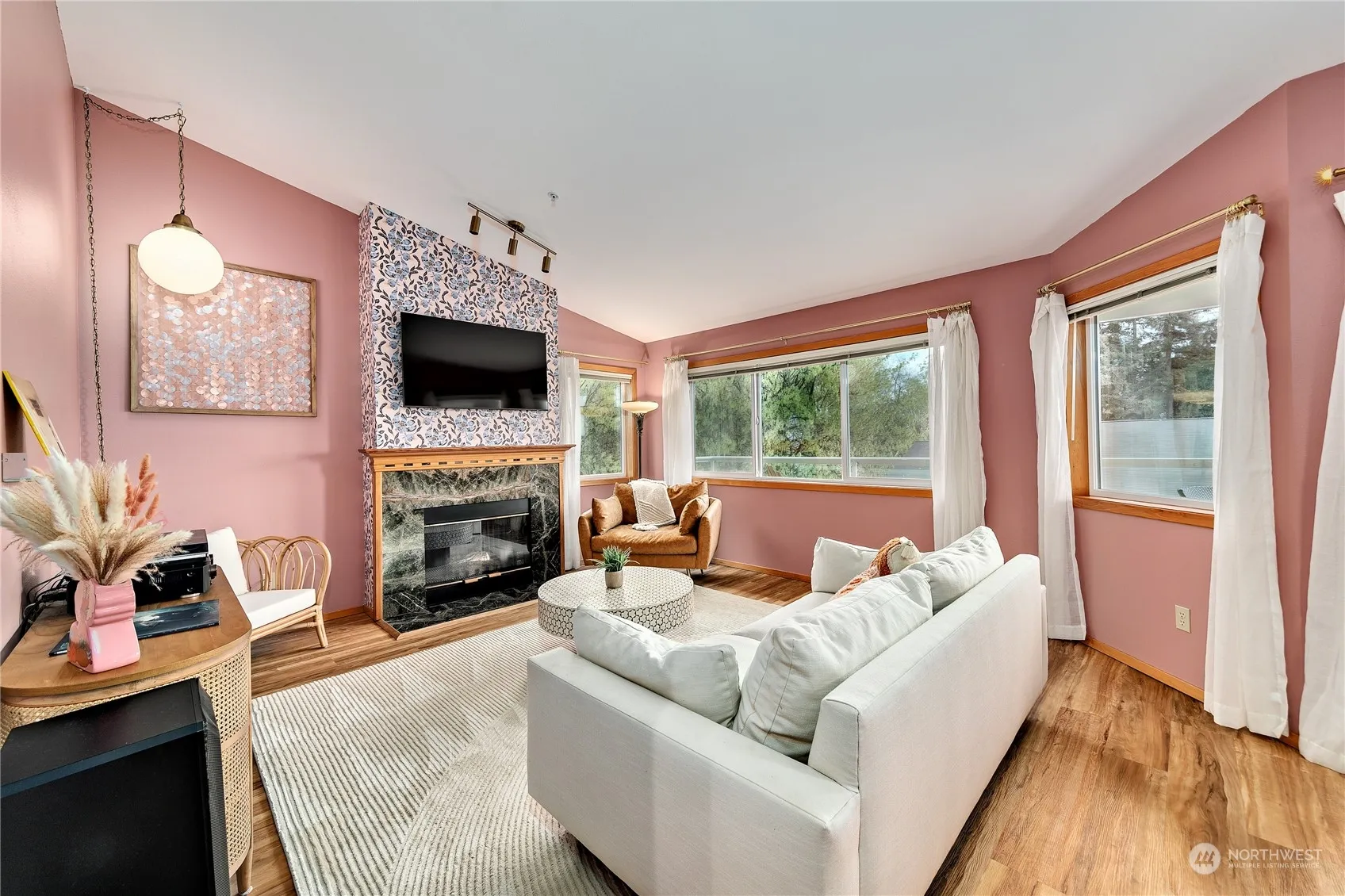 Amazing top floor corner unit in the convenient Harbor Place on the hill just above quaint Kingston. Territorial views towards a green belt & the Olympics create the feeling that you are worlds away yet minutes to the town or ferry. Rare find of 3 generous bedrooms incl a primary ensuite w/ private bath & walk-in closet. Updated kitchen w/ granite counters & newer ss appliances. New luxury vinyl flooring. Open main living/dining area w/ vaulted ceilings & cozy propane fireplace is perfect for entertaining… Walls of windows allow lots of natural light. Sliders lead to a near full length deck to appreciate the views. Top this off w/ your own garage plus carport parking & large storage unit on the deck + pet friendly. Must see to appreciate!