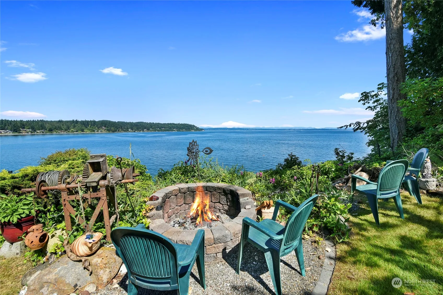 Experience 141+/- waterfront living at its best with sweeping Puget Sound, Cascade, Marine traffic and Seattle Skyline views. Beautiful gardens surround this 2158 sqft funky beach house on .91 beautiful acres located at the end of the road for privacy. Stairs to the beach & small boat shed with viewing deck where sometimes Mt Rainier makes an appearance. Mini split in the great room and a wood burning brick FP for year round comfort. Detached garage/shop/carport for covered parking and a 780 sqft shed for hobbies. Two small green houses for the gardener. Boat launch close by at Suquamish or Bay Marine. Easy commute to Bainbridge or Kingston ferries. Comp roof & rubber membrane on main building, metal roof on shed building.