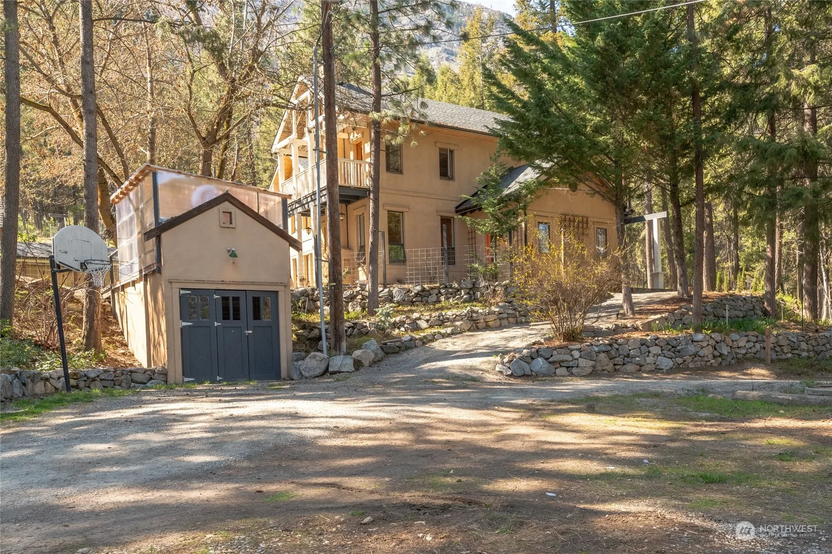 Welcome to 12725 S Lakeshore Rd! Shy 3900sq’ quality constructed home on over an acre of land in a park like setting! Home offers peak a boo view of Lake Chelan & is nestled nicely amongst the pines providing a ton of privacy. Home has tall ceilings w/ exposed beams, a spacious great room, 4 bedrooms including 2 en suites, remodeled primary bath, newer roof, & main level heated floors. Outside find a private courtyard, green house, storage shed, garden, & home is served by a private well. There is plenty of parking & a convenient pass-through driveway plus easy access directly off paved & county-maintained S Lakeshore Rd! Located above Kelly’s Resort & just a 1/4 mile from the Yacht Club. Unique & special property w/ a ton of potential!