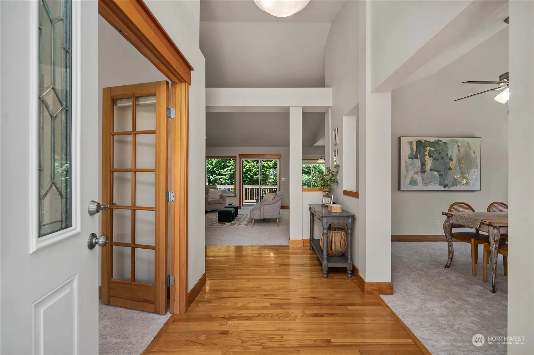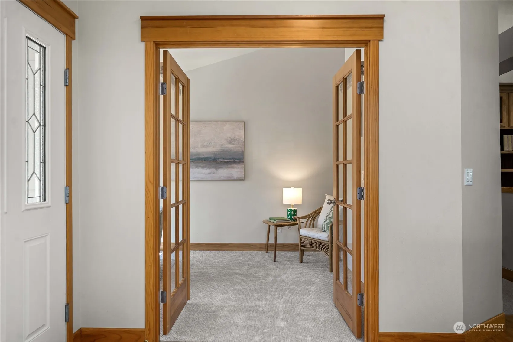 Beautiful rambler in the desirable gated community of Southport. This open, light filled home is move-in ready with new carpet and paint throughout. Family room has gas fireplace with beautiful stone, vaulted ceilings, and custom built-ins. Kitchen with eating nook opens to family room and features stainless steel appliances, gas range, island, pantry, and hardwood floors. Large office with french doors. Generously sized primary suite. Deck with private, tree lined backyard. One story living at its finest with large 3 car garage in a beautiful setting. Community park, playground, sport court. Prime location just minutes to HW 16, shopping, restaurants, the Cushman Trail, and our quaint Gig Harbor waterfront.