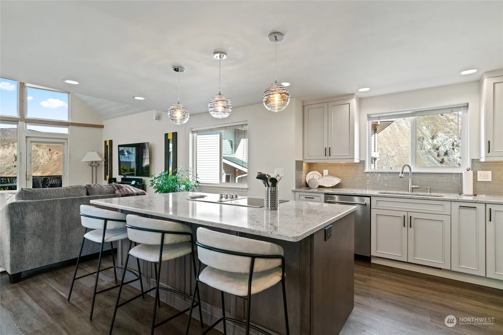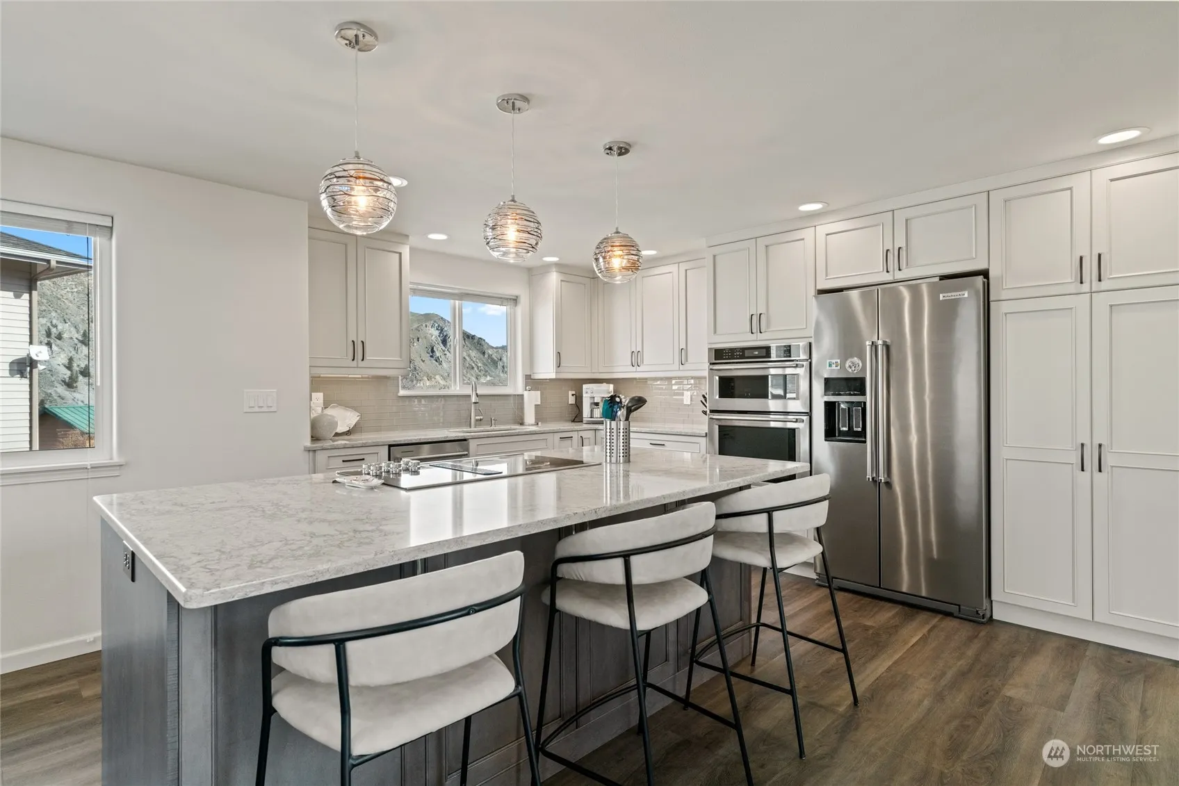 Welcome to Sun Cove! First time on the market for this Columbia River dream home. Professionally updated kitchen w/ quartz counters, SS appliances, soft close cabinetry w/pull-outs. Open concept floorplan w/floor-to-ceiling windows overlooking Columbia. Spacious dining area with coffee/wine bar including wine fridge. Gorgeous home designed for entertaining & relaxing. Enter the French doors to primary, enjoy the views, soaker tub ensuite & walk-in closet. Loft retreat affords many options. Enjoy your morning coffee on the sundeck & the spectacular sunsets with a glass of wine on the patio. Room for toys including RV/boat parking. CC&R’s allow 12 yearly STR’s w/ lottery in Nov. New roof with transferable warranty. Check out the virtual tour!