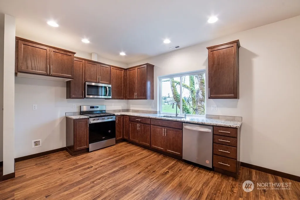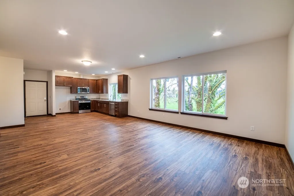Beautiful spacious new construction home with huge 40′ Deep x 33′ Wide shop with (2) 12′ Wide by 12′ Tall garage doors. Room for 4 vehicles, 2 Class C RVs (certain Class A RVs will fit) or 2 large Boats. Functional kitchen and great room, 3 spacious bedrooms. Granite counter tops in kitchen and bathrooms, stainless steel appliances. Laminated Vinyl Plank flooring throughout. Flat beautiful site with pastoral views.