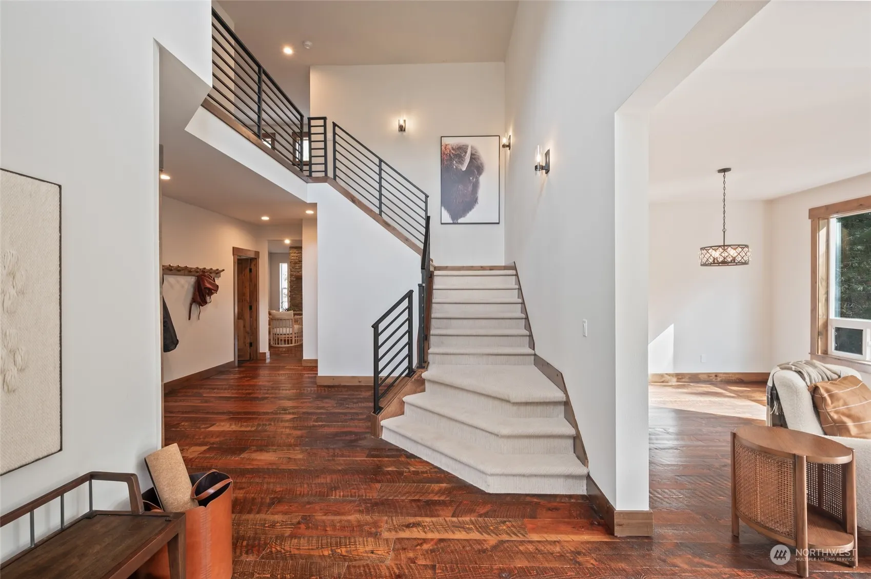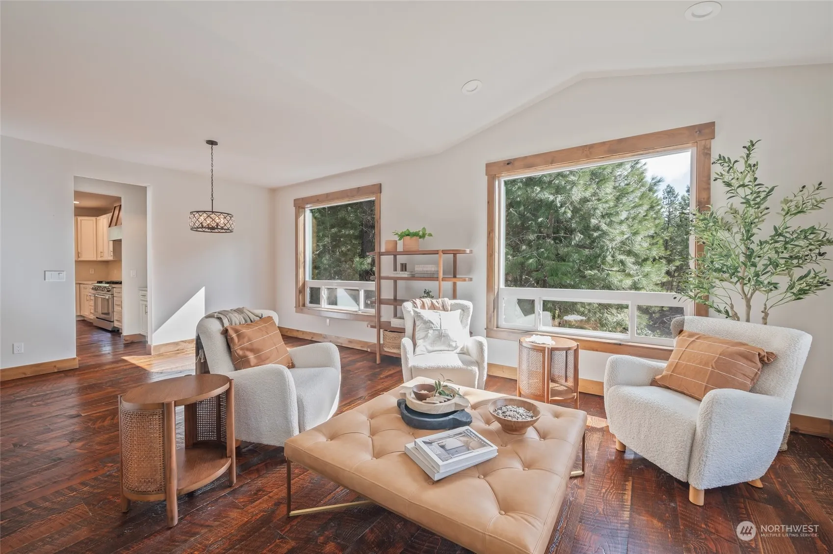 Experience elegant, mountain-modern living near Cle Elum! This updated 3367sq ft home sits on 3-acres in a private, gated community. Contemporary design meets rustic charm with wood floors, beam details & forest views from every window. Chef’s kitchen with high-end appliances, marble & quartz countertops & butler’s pantry. An entertainer’s dream with the stone fireplace & spacious backyard with patio, lawn & sand volleyball pit. Luxurious primary bedroom with 5-piece bath. Three additional bedrooms provide flexibility. Extra large 3-car garage & ample driveway space for Boat & RV w/power. Enjoy nearby hiking, skiing & more! Minutes to Cle Elum, an hour to Downtown Seattle.