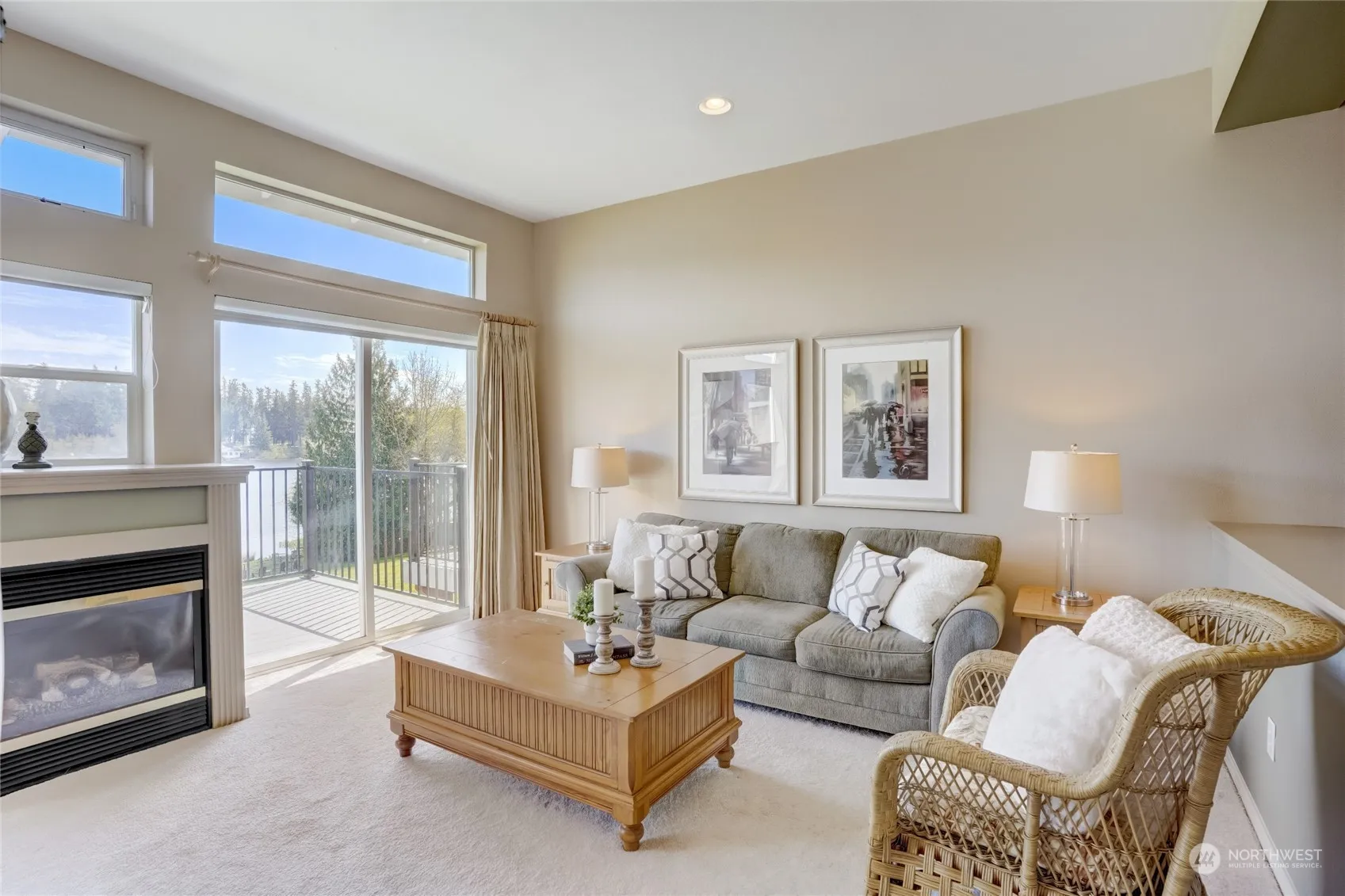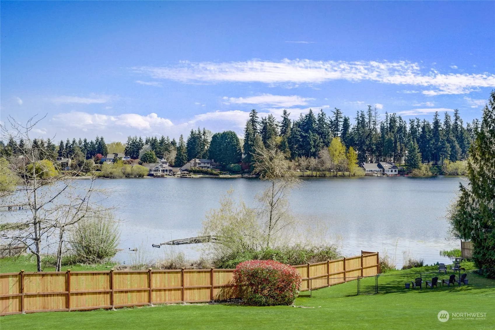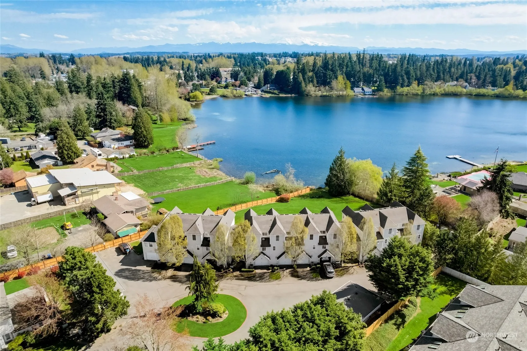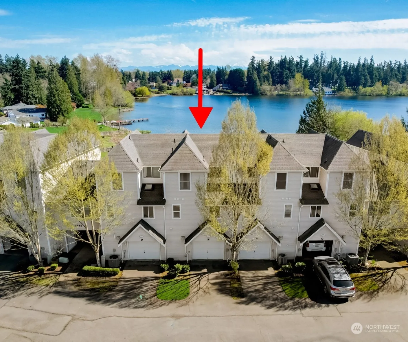 Rare waterfront townhome! Walls of windows flood the home with natural light and show off your stunning unobstructed views of Surprise Lake and Mt. Rainier! Community waterfront access – launch your kayak or just lounge on the lake! This 2 bedroom, 2.5 bath home has 1,539 sq/ft. Large open concept living space showcases amazing views in every room. Spacious kitchen with good counter space flows into the dining and living rooms. Top floor is the enormous primary suite with vaulted ceilings, skylights, walk-in closet, spacious 5-piece bathroom and of course amazing views. Large laundry room with extra storage, 2 private garages plus another off-street parking space. Quiet, secure and gated community yet close to everything.