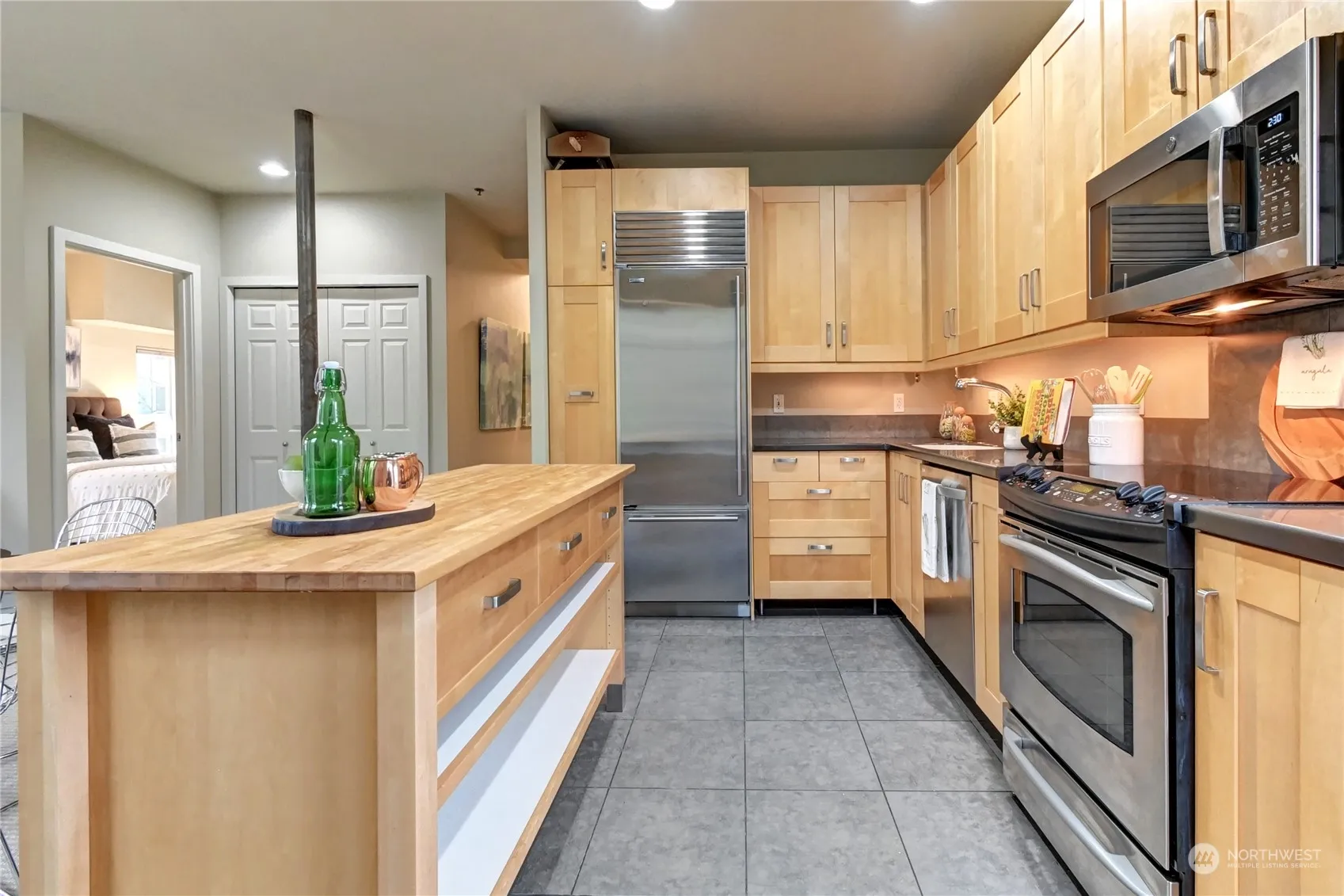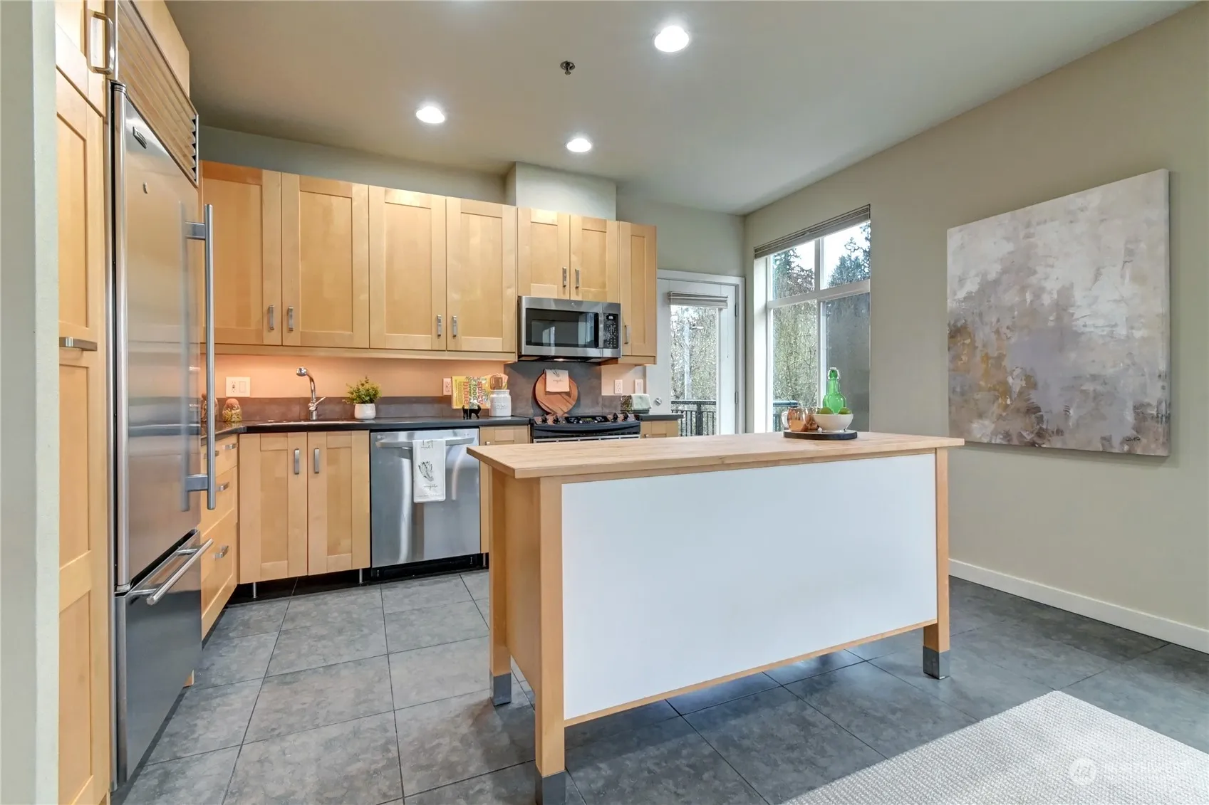 Urban living at its finest in DT Redmond! Mins to 520, MS & just blocks to shops, restaurants, Redmond Town Center, trails, parks & future light rail! Beautifully upgraded west-facing, top-floor corner unit boasts abundant natural light w/high ceilings & expansive windows. Custom kitchen offers high-end SS appliances & butcher-block island. Main bedroom w/ensuite bath & double windows for serene slumber. 2nd bedroom or home office. Special features include heated floors, smart thermostats & more! Convenient utility room w/stacked W/D & storage. Step onto your private balcony or explore the rooftop terrace w/mtn & city views. Secure elevator building w/2 parking spots & storage in the garage. Solid HOA. No rental cap & 1-year home warranty.