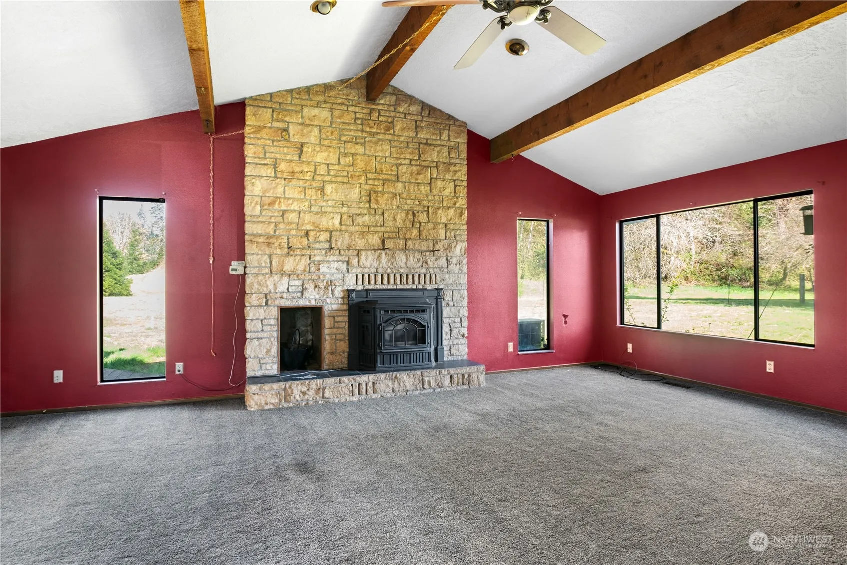 Welcome Home! This 4 Bed, 2.5 bath home is just waiting to be brought back to life! Home features newer roof 3 years old, new heat pump, sunk in great room with vaulted ceilings, exposed beams and a beautiful stone fireplace with pellet stove insert. Primary bedroom includes ensuite bath and 3 closets! Home has a 2 car attached garage with entrance into the laundry room, Covered RV parking w/ full hook-ups, barn with 4 horse stalls, and hay loft! Flat usable acreage for a garden, animals or both! Sit out on the back covered porch and listen to the birds chirp. Property is close to town and schools. Enjoy the tranquility and space this home and property has to offer and put your own touch on this to make it your very own Home Sweet Home!