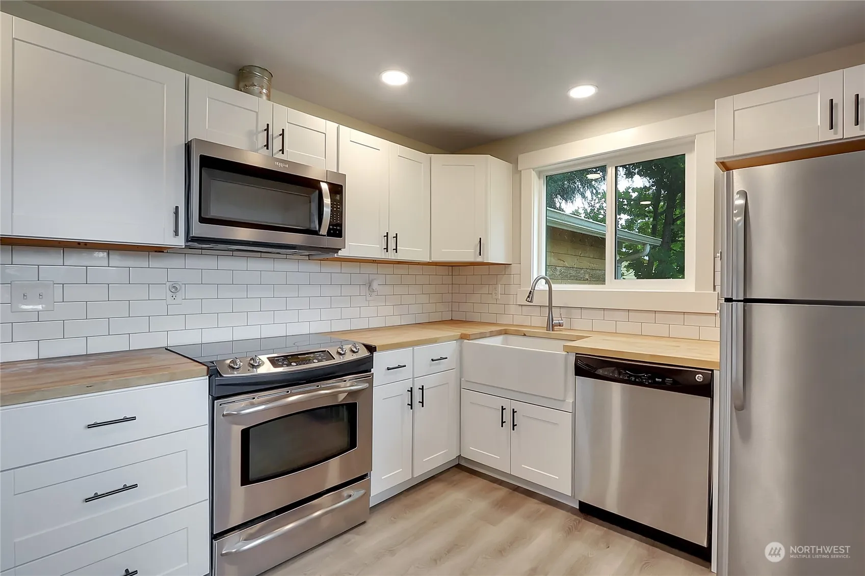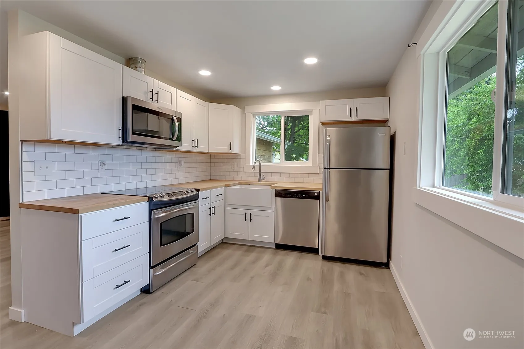 Remodeled home on a large lot nestled in a quiet cul-de-sac in Lacey, just off College Street! Home features up to 3 bedrooms with the lower portion of the home having very flexible use, and a half bath! Kitchen features butcher block countertops, with white tile backsplash and newer stainless appliances that stay. Durable and attractive vinyl plank flooring complete the fresh look of the home. The fully fenced back yard has room for toys and includes a fire pit and in-ground trampoline, and a cozy fireplace area. Located near schools, shopping, and parks. Easy commute to I-5!