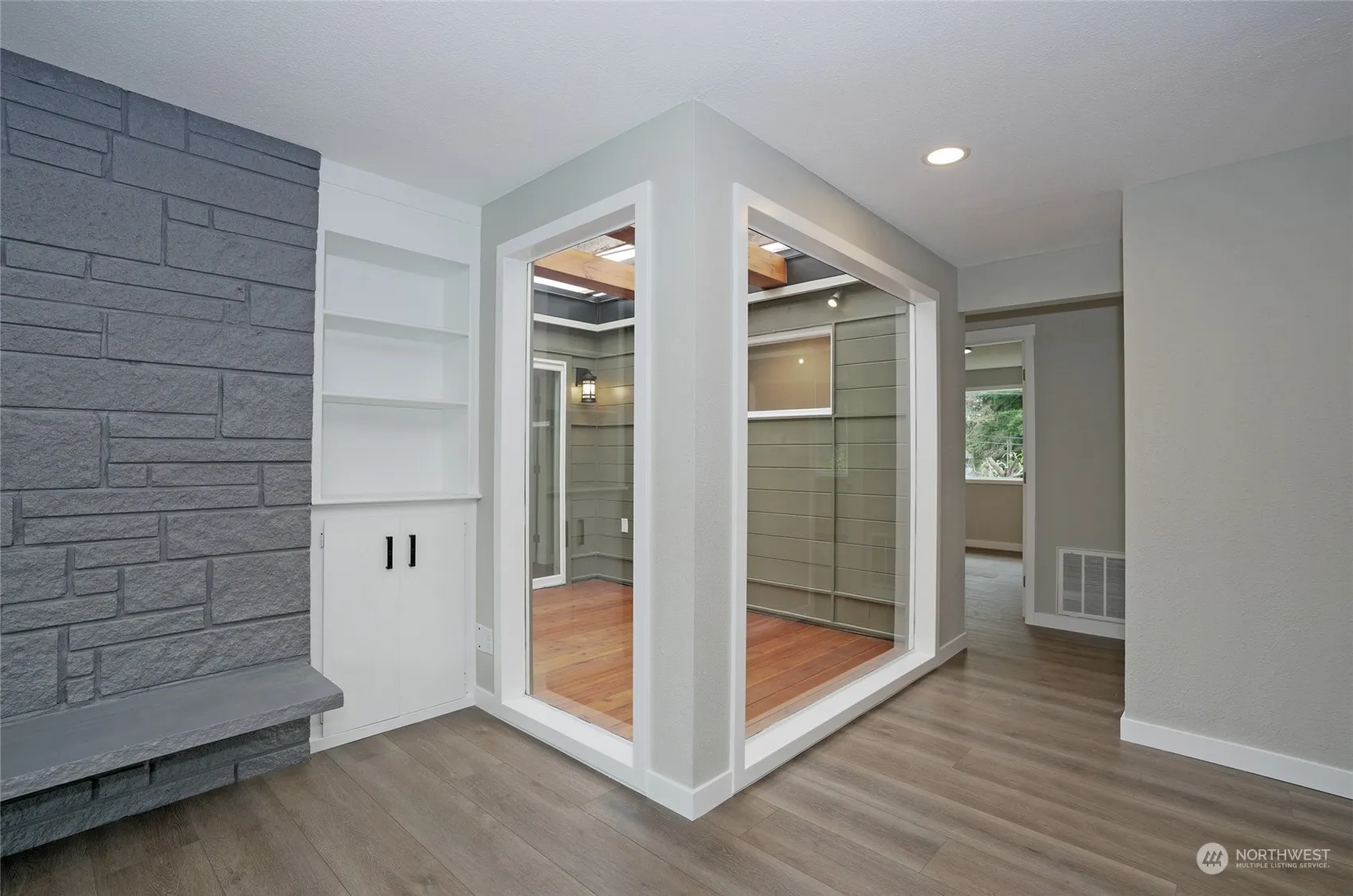 Fully refreshed mid-century home with amazing charm. The circular floor plan showcases the interior atrium. Your own private outdoor space entering from your interior. New roof in 2023. New paint and flooring throughout. 3 bedrooms 1.75 baths. Detached oversized garage for your cars or shop with fantastic storage. You will enjoy the nice patio and backyard partially fenced. This stylish home is conveniently close to I-5, Steilacoom and Pierce College.