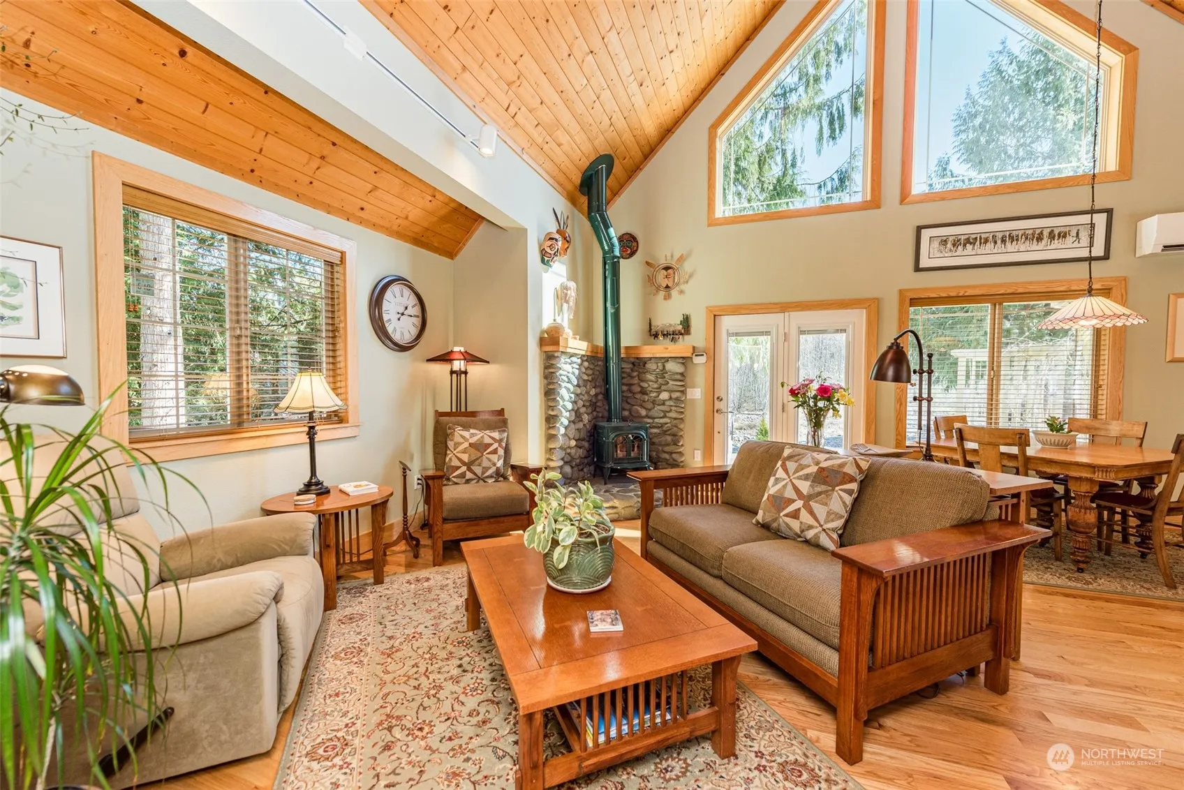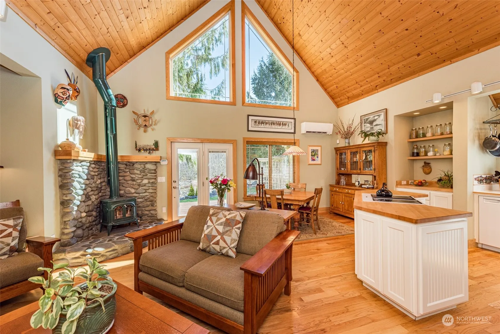 Private home of superb quality on 5 of the most beautiful acres of Dungeness River frontage imaginable. The property stretches across an offshoot of the river, an “island” of trees in the middle of the river, the main river flow & even over to the other side where it borders on 318 ac of DNR land. Home was built by the highly respected Jim Reed w/wood milled from the property. Great rm w/pine t&g ceiling, 3/4 in Oak floors, wood stove w/Dungeness River rock hearth. New primary suite is incredible & this wing of the home is wheelchair accessible. Large primary bath w heated ceramic tile floors and tile shower, and alder cabinets from the property. Large walk in closet w/built in system. Beautiful pine skylight at vaulted peak in primary BR.