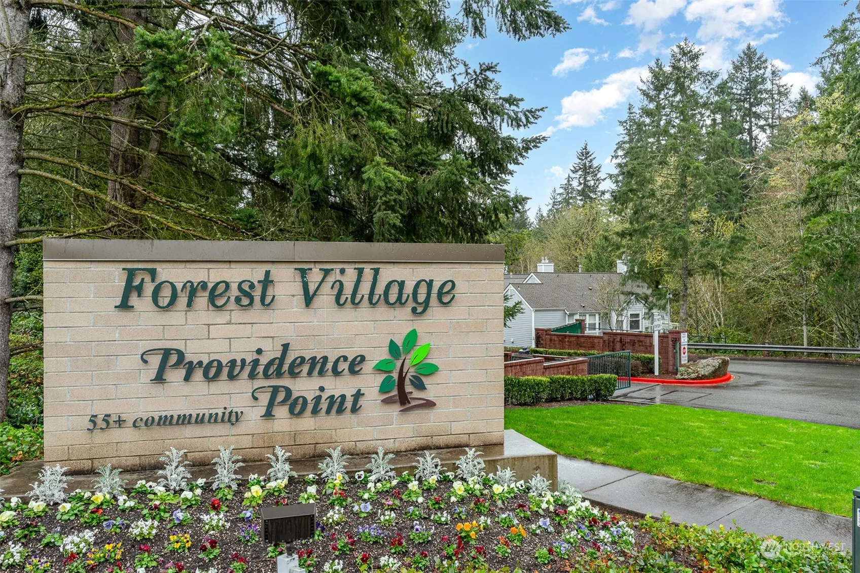 Embrace Serenity & Community at Providence Point. an exclusive 55+ community nestled in the scenic & lush green landscape of Issaquah. no stairs! This charming one-story condo w/partial open floor plan is meticulously crafted for comfort & ease. Enter, the warmth of the spacious living room w/its expansive picture window framing w views of enchanting forest beyond—a living painting that changes w/the seasons. Spend cozy afternoons w/a good book or entertaining friends w/the natural world as your backdrop. well appointed bedroom & bathroom space. Forrest Village hosts several clubhouses, libraries, “Communiversity” classes, a large pool, tennis/pickelball court, a pea patch for gardeners. accessibility to trails. Wow!