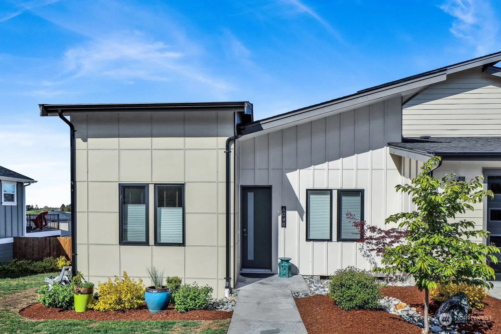 Contemporary home in The Meadows Development. 3 Bedrooms 2 bathrooms with a large office & Laundry. The kitchen has modern soft close cabinets, Stainless steel appliances quartz counters, a Tiled backsplash, and a large breakfast bar. The primary suite has a beautiful walk-in tiled shower with a bench and rain shower head. walk-in custom closet with built-in cabinets. Speakers in the ceilings, A/C, electrostatic filter for your air, front deck to enjoy your view. 2 entrances to this home, you can park on Brian ct in your garage and walk up the stairs to your home or park on Rossie ln and walk into your home. Home is a zero-lot line. Walking distance to Elementary and Middle School. Walking trails in the Meadows and a tree-lined boulevard.