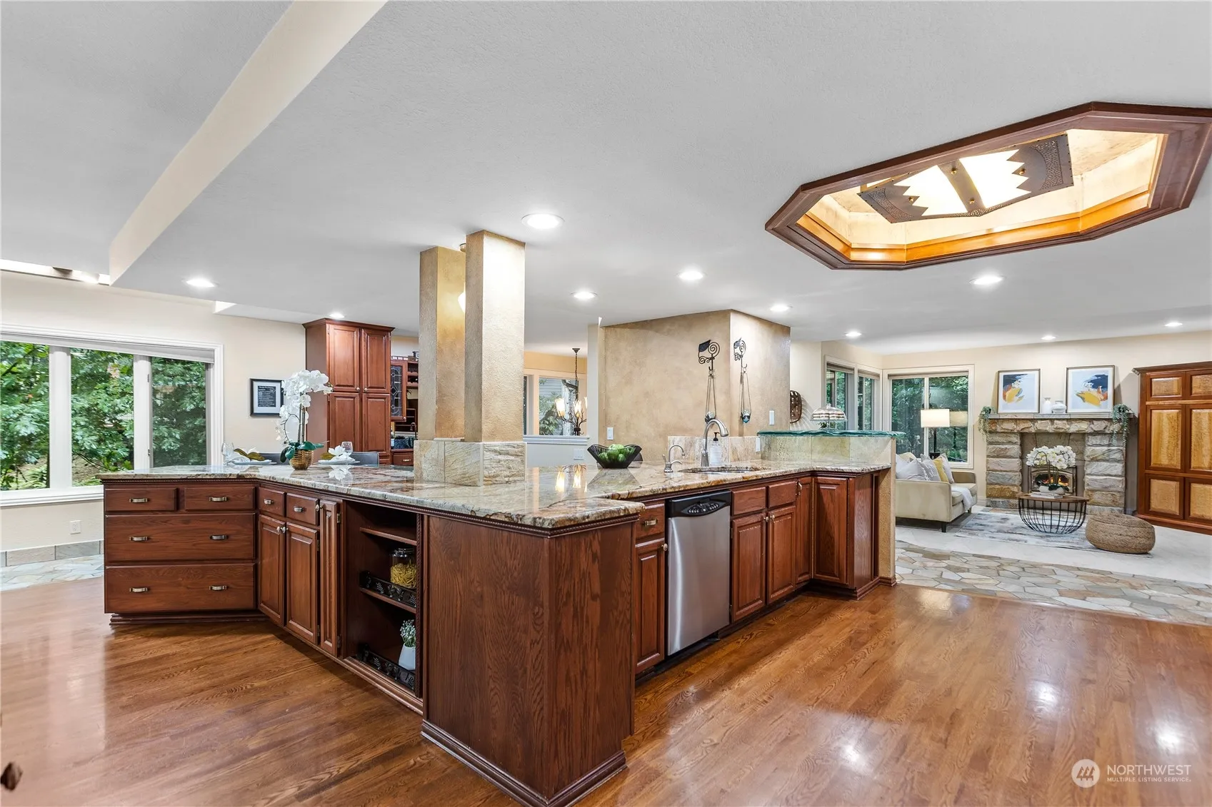 This spacious abode displays a floorplan designed for hosting. Naturally lit kitchen offers multiple eating spaces w/ wet bar & cozy sitting room. Continue down stairs off kitchen to bonus rec room w/ french doors leading out to hot tub & lush 1+ acre property. Main floor provides office space, expansive formal living room & formal dining area. Step outside to a stunning deck, perfect to continue your gatherings outdoors. Upper level features yet another generous bonus room, complete guest suite w/ its own en suite full bath, 2 additional bedrooms, & extravagant primary bedroom w/ double vanity & 2 huge walk in closets. Resting in the heart of Woodinville, minutes from wine tasting, equestrian venues, and 405, LOCATION could not be better!