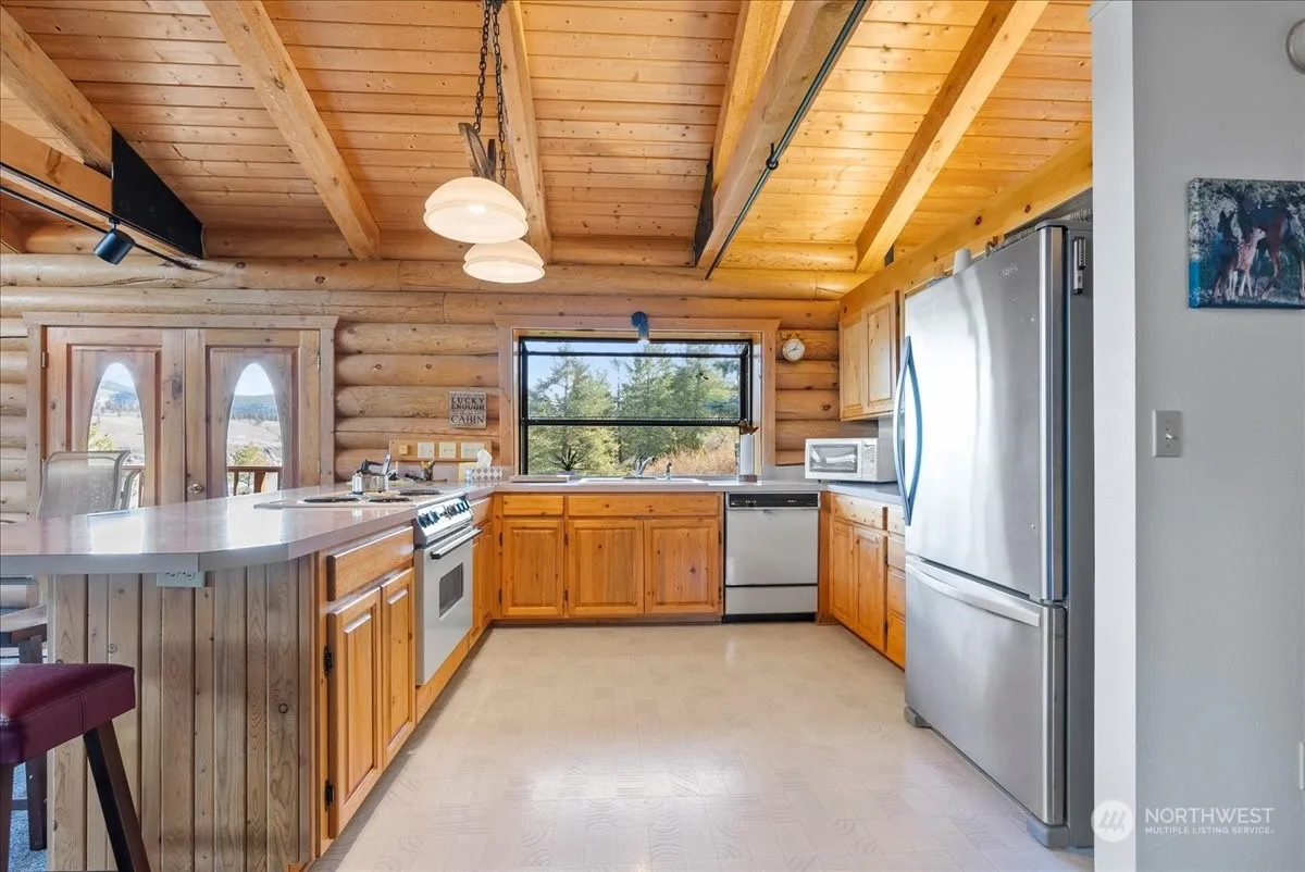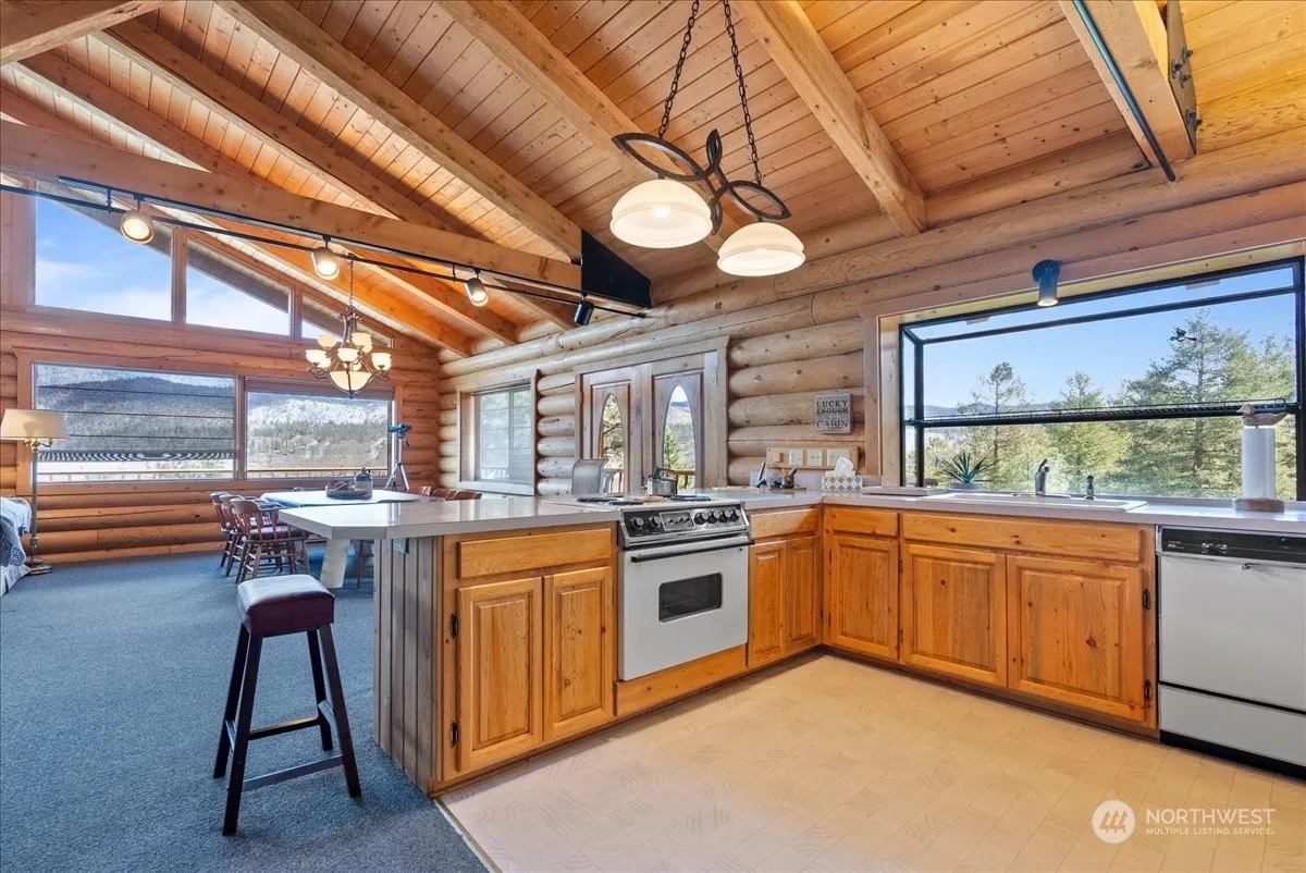 This Majestic views of Lake Roosevelt from this home on the 1310 line overlooking Rantz Marine. 365 ft of 1310 frontage. 2.3 acres total with this log home built with beautiful Swedish Coupe Montana 10 inch logs. Open living concept with the Living, Dining and Kitchen with breakfast bar and custom built cabinets. Spring fed water system with an emergency backup system. Wrap around Cedar deck with French doors from the living room. Workshop and tool storage downstairs. Several beds downstairs. Concrete patio with a slider on the basement level. Laundry room is on the main level. Living room has vaulted ceilings and custom beams and iron work. Moorage buoy included with purchase. Rantz Marine has a boat launch..