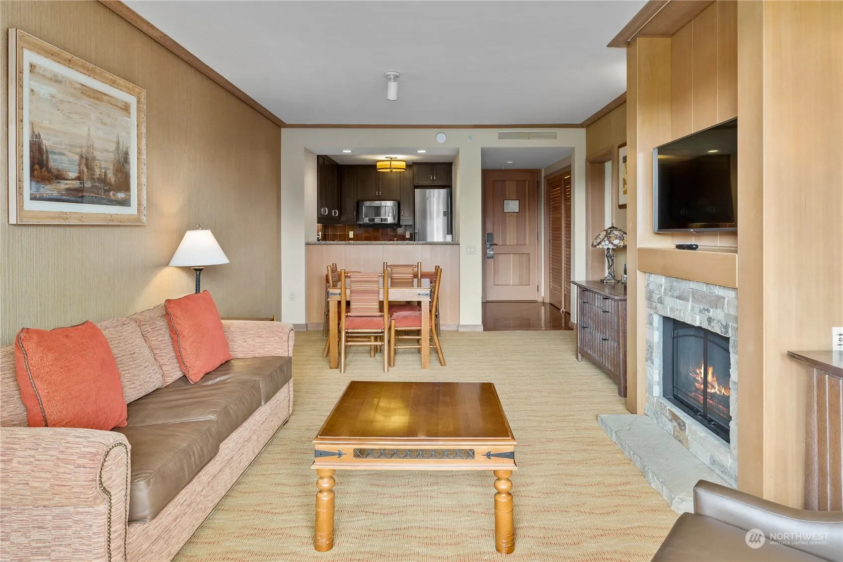 3rd floor, one-bedroom condo home in The Lodge at Suncadia. Enjoy wine & sunsets on your covered deck…or coffee in the morning breathing in the fresh mountain air! Cozy up to the real stone fireplace with your favorite drink on those cooler summer evenings. Convenient access to all the year-round amenities, nearby trails & 36 holes of scenic championship golf. A short stroll to the Swim & Fit Center, Recreational Lake, Spa & future Village to come. Low maintenance living at its best! Fully furnished, turnkey. Move in now and enjoy fall/winter at Suncadia!
