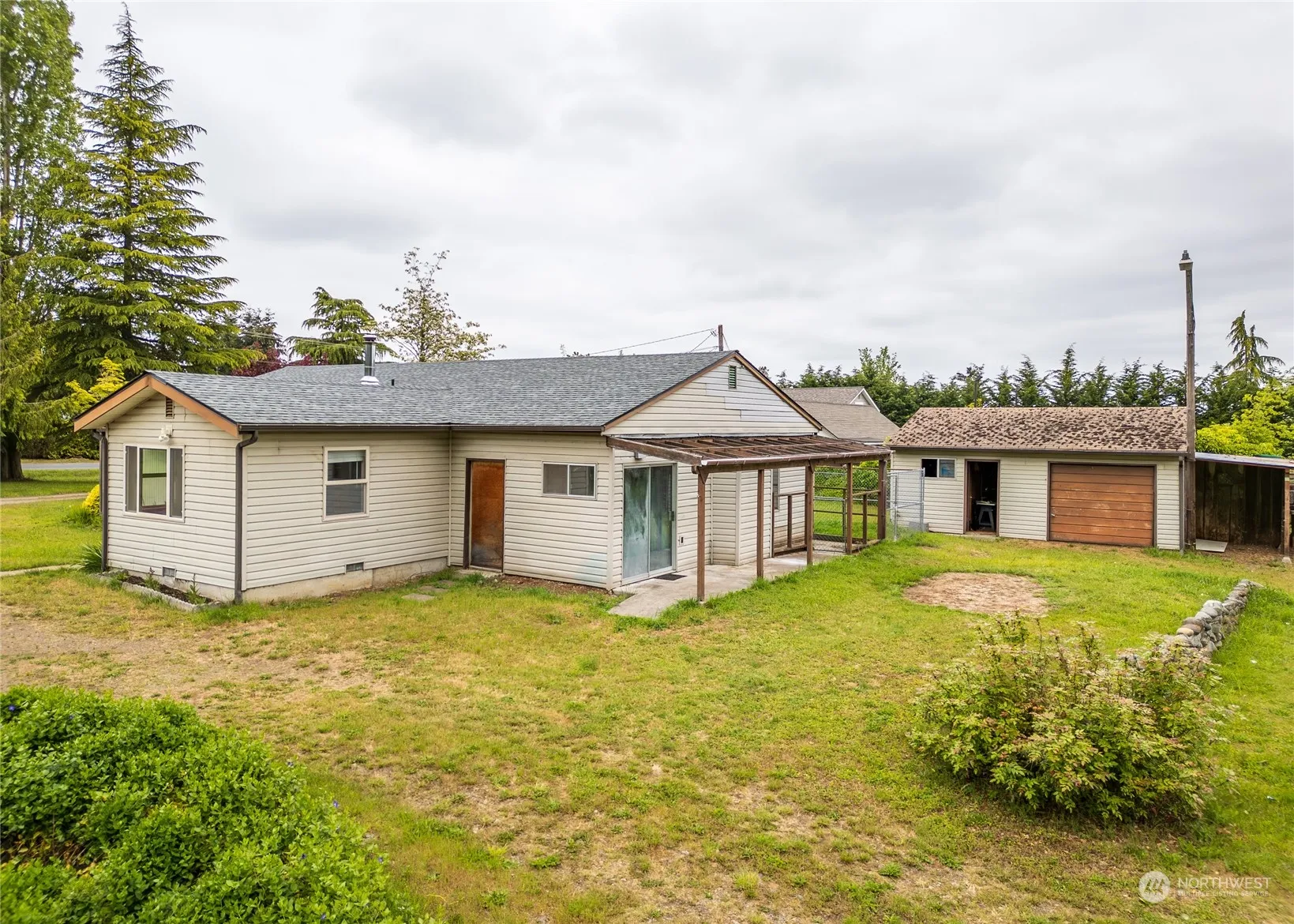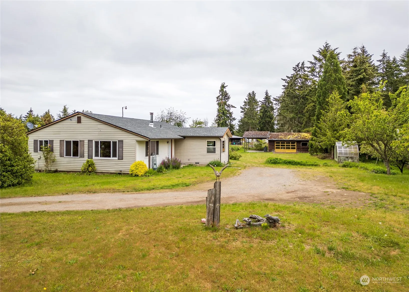 Room to roam w/ mature trees, garden beds, & greenhouse located on nearly an acre close to town. Lots of potential with two detached garages, covered RV parking, shop, mountain views & dog run. Perfect for gardening or a small farm with walnut & fruit trees while still leaving room for animals. Good bones, waiting for your creative touches to make it home. Minutes to downtown shopping, dining, & medical. Visit nearby hiking/biking trails or Dungeness River for all your outdoor adventures