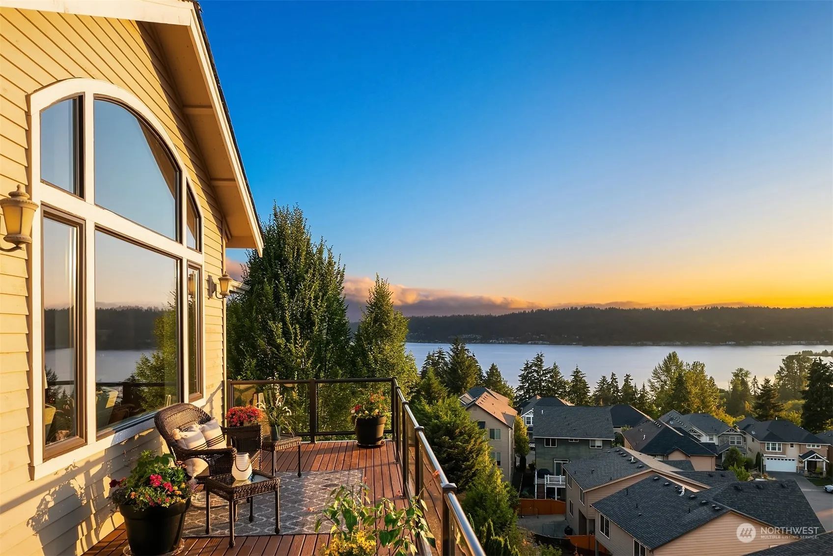 ** Improved Pricing! ** Experience mesmerizing views of Lake Sammamish & the Cascade Mt’s. This luxe 4-BD 3.5-BTH single-story home w a basement boasts double east-facing view decks, designer touches throughout & walls of windows streaming natural light creating a lovely ambiance. The [Primary Suite on Main] is a true retreat, featuring sweeping views, gas fireplace, double walk-in closets & a spa-like bath designed to rejuvenate your body & soul. Entertain in fashion while gathering around the center island w open floor concept & walkout view deck. With 3 separate living spaces this home is perfect for busy lifestyles offering ample separation & privacy. Addl features include luxe appliances & 60 amp car charger. Pre-inspected!
