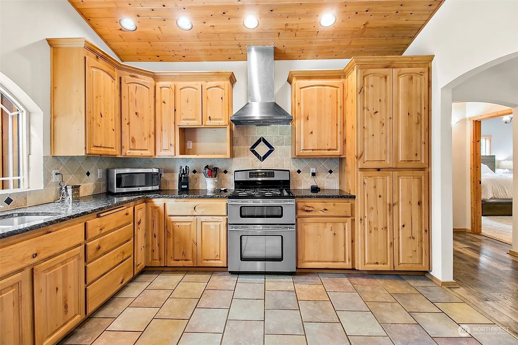 Welcome Home to your beautiful custom-built single level home sitting on just under 10 acres! Enjoy the quiet seclusion of your parklike setting while being just minutes from downtown Eatonville. Lynch creek splits the property offering a unique waterfront feature. 3 Spacious bedrooms & 2 baths featuring over 1900 sq. ft of open living space. New Flooring, new blinds, fresh paint & updated faucets in baths are just a few recent upgrades. Accommodate all your toys in 1 of 2 outbuildings. A large 16 x 32 shop with 12 x 12 door & 12 x 22 x 35 outbuilding w/ lean-to. Private driveway off of cul-de-sac leads to black iron automated gate. Fruit trees & raised beds! Relax on your large covered porch & enjoy the sounds of nature & wildlife.