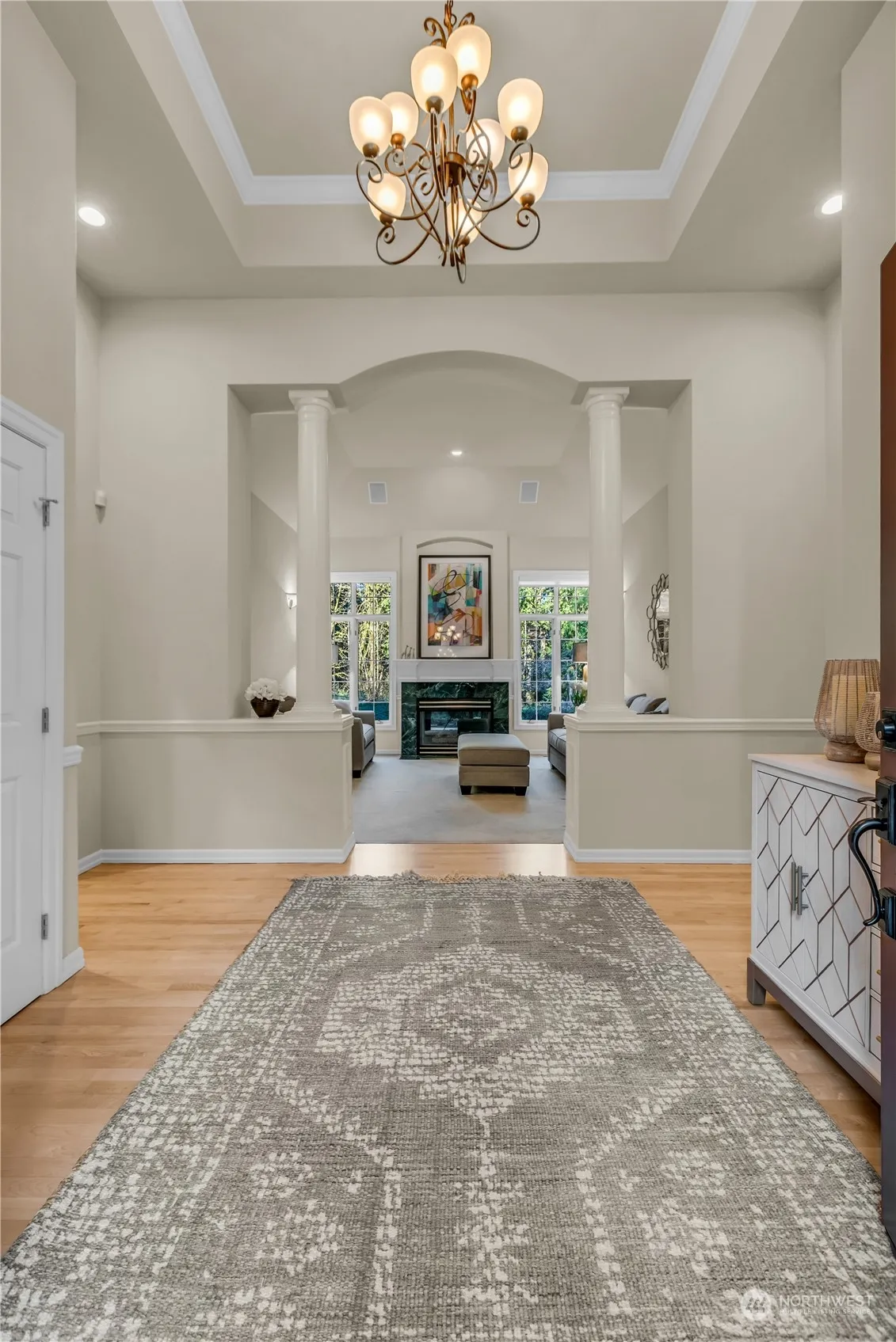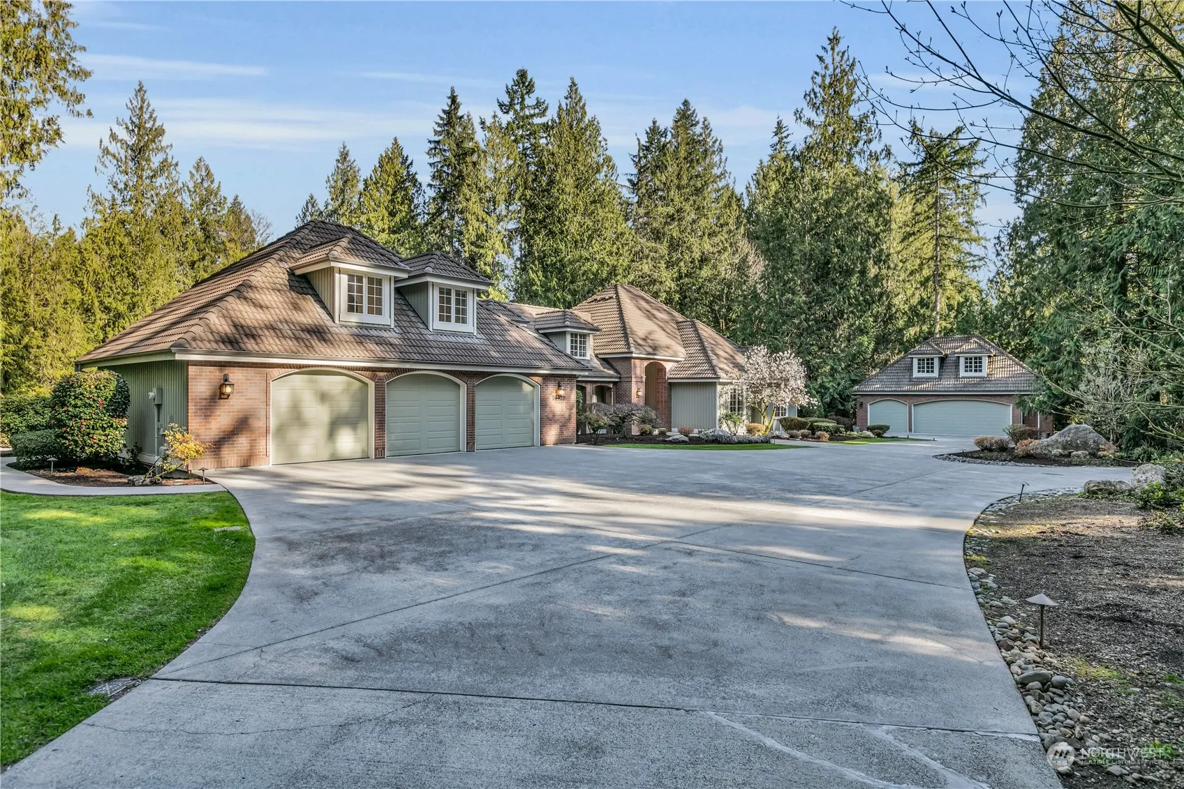Exceptional Bear Creek enclave offers over 8 acres of private woodland & thoughtfully designed living space. Elegant foyer opens to One Level living lifestyle. Skillful architectural design is both dramatic & subtle; vaulted & coffered ceilings, sky-wells & oversized windows have created a delight of light & air. Inspired lay-out offers a bedroom & office wing where you’ll discover a wonderfully large primary suite with fireplace & seating area opening to an outdoor patio. Bonus upper-level media room & half bath built above attached garage. The detached garage invites your hobbies; 6″ deep concrete floor allows for auto stacking, upper platform built for weight bearing. Systems are newer, generator back-up, AC, meticulous maintenance.