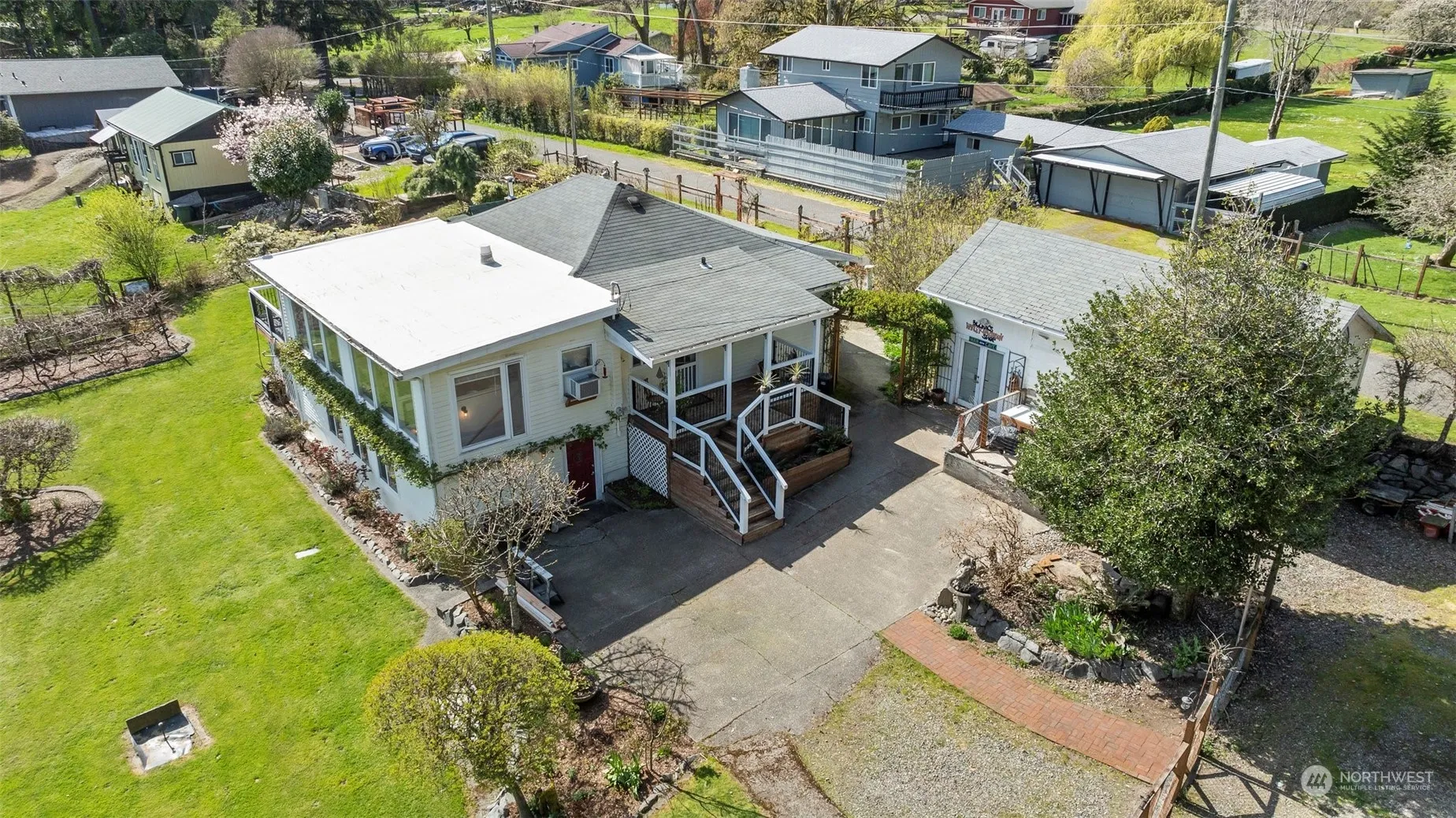 Charming 1905 home with water views of Von Geldern Cove & Mt Rainier! Fantastic open floorplan on main featuring large windows to capture the view. Nicely updated with spacious kitchen, granite slab counters, beautiful hardwoods & built in cabinetry. Primary suite w/French doors to hot tub on wrap around deck. Ensuite includes gorgeous new tile shower w/ dual showerhead & sinks, plus walk-in closet. Downstairs could be separate apartment & it’s wheelchair accessible! A finished bedroom plus bonus 960 sqft including main room, a bedroom or den, storage, utility room, kitchen & full bath! Yard is dreamy w/epic tree house, 2 green houses, fruit trees & raised beds, water feature & unbelievable wood fire pizza oven! Only 14 miles to Gig Harbor!