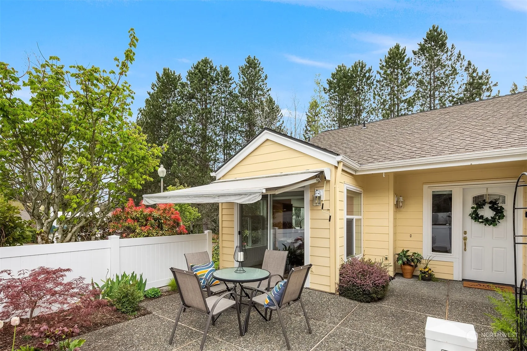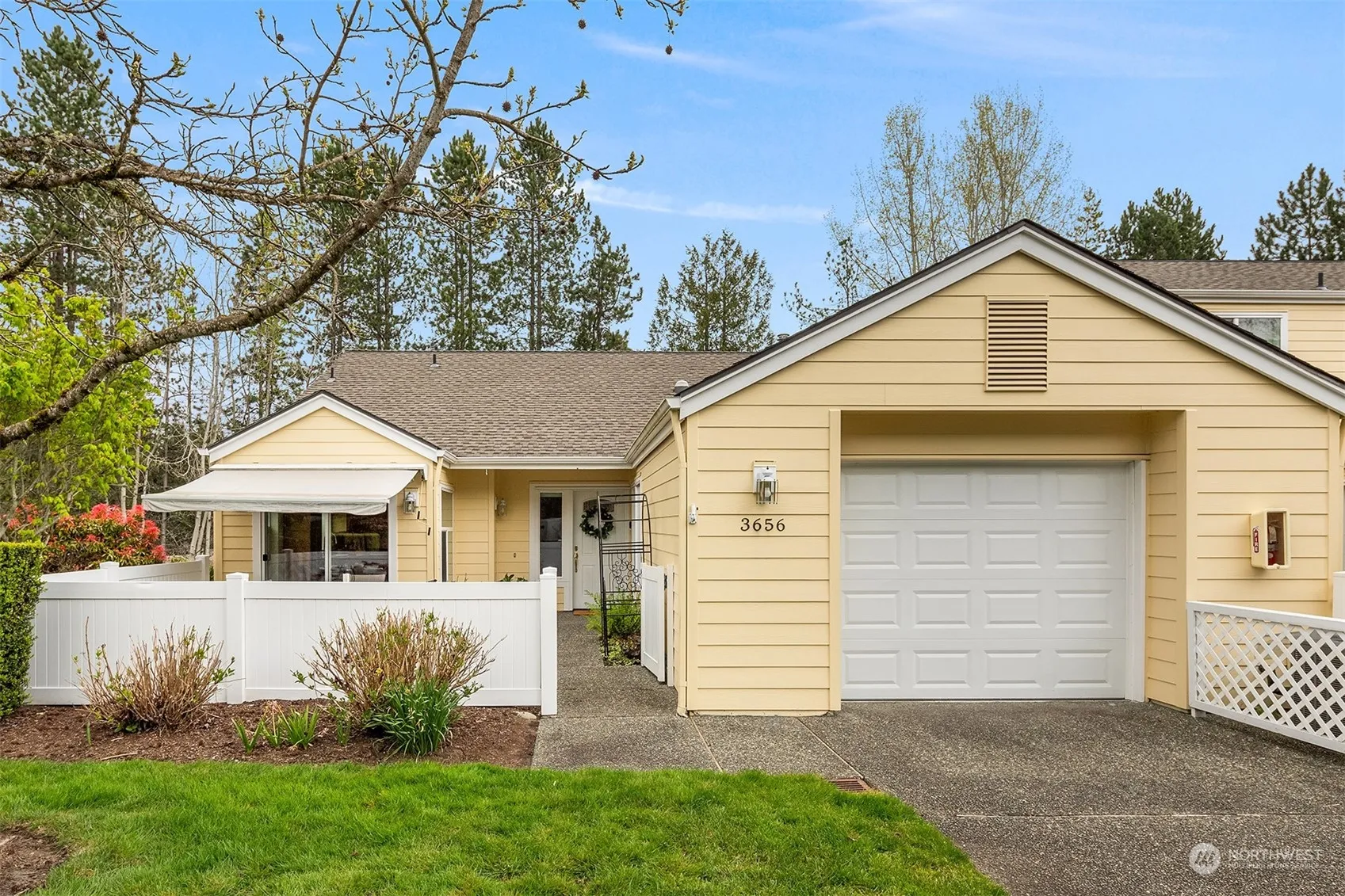 Charming fenced courtyard leads to this private one bedroom PLUS den home in popular Garden Village neighborhood. Spacious kitchen with breakfast nook opens to huge sunny patio to enjoy morning coffee. Vaulted ceilings and solartubes provide natural light to open living room, dining room and den. Cozy gas fireplace. Exceptional 12′ x 18′ primary suite with triple closets, new walk-in shower, room for sitting area or desk. Second full bath. Central A/C. Attached extra-large, one-car garage supplies loads of storage space plus driveway parking. Active Adult 55+ Community with indoor pool + spa, clubhouse, tennis + pickle ball courts, library, pea patches, trails, transportation, security gate, social + sporting events. Strong HOA financials!