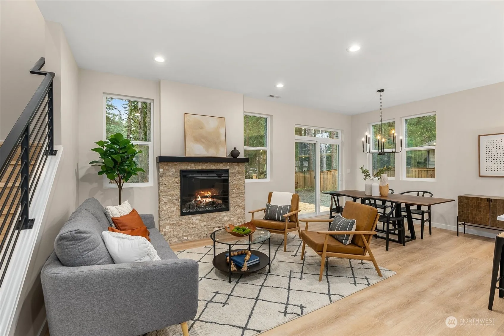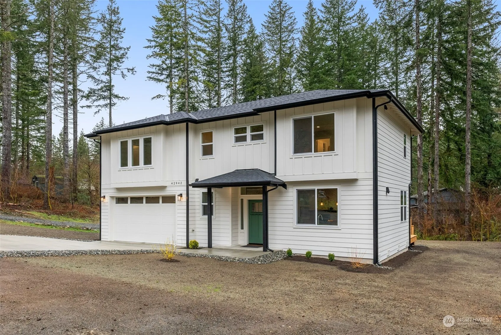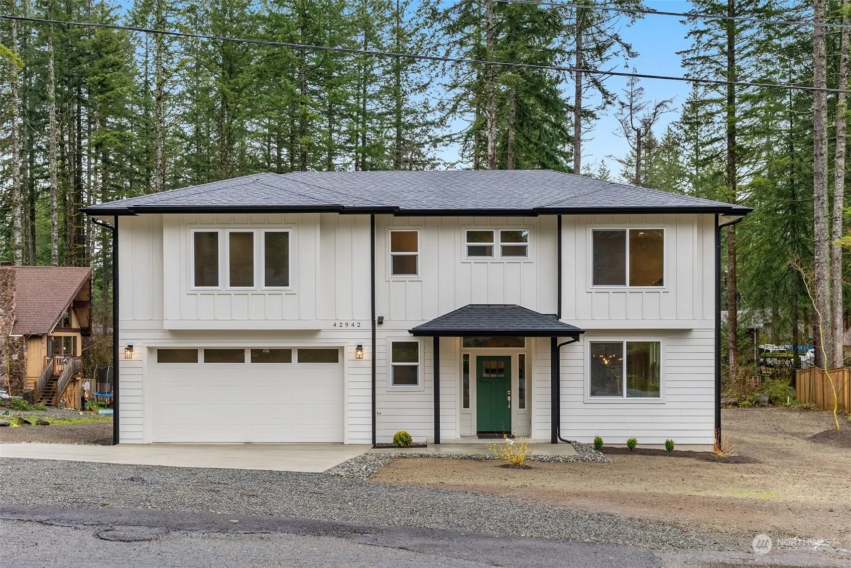 Custom Built NW Home in North Bend located in the heart of Wilderness Rim Neighborhood! This stunning new build has an open floor plan, living space that eases into the dining space and kitchen. Perfect for entertaining or just relaxing. Three large bedrooms upstairs w/walk-in closets in each bedroom, including the primary suite w/an ensuite bath and a walk in closet. Upstairs you will also find an office space and laundry room. Partially fenced yard, W/AC unit. Situated on a large lot with so many opportunities for entertainment needs. Walking distance to the community lake, playground, clubhouse, covered picnic area. Serene views of the mountains, minutes to Rattlesnake Lake, hiking trails with stunning views, shopping & more.