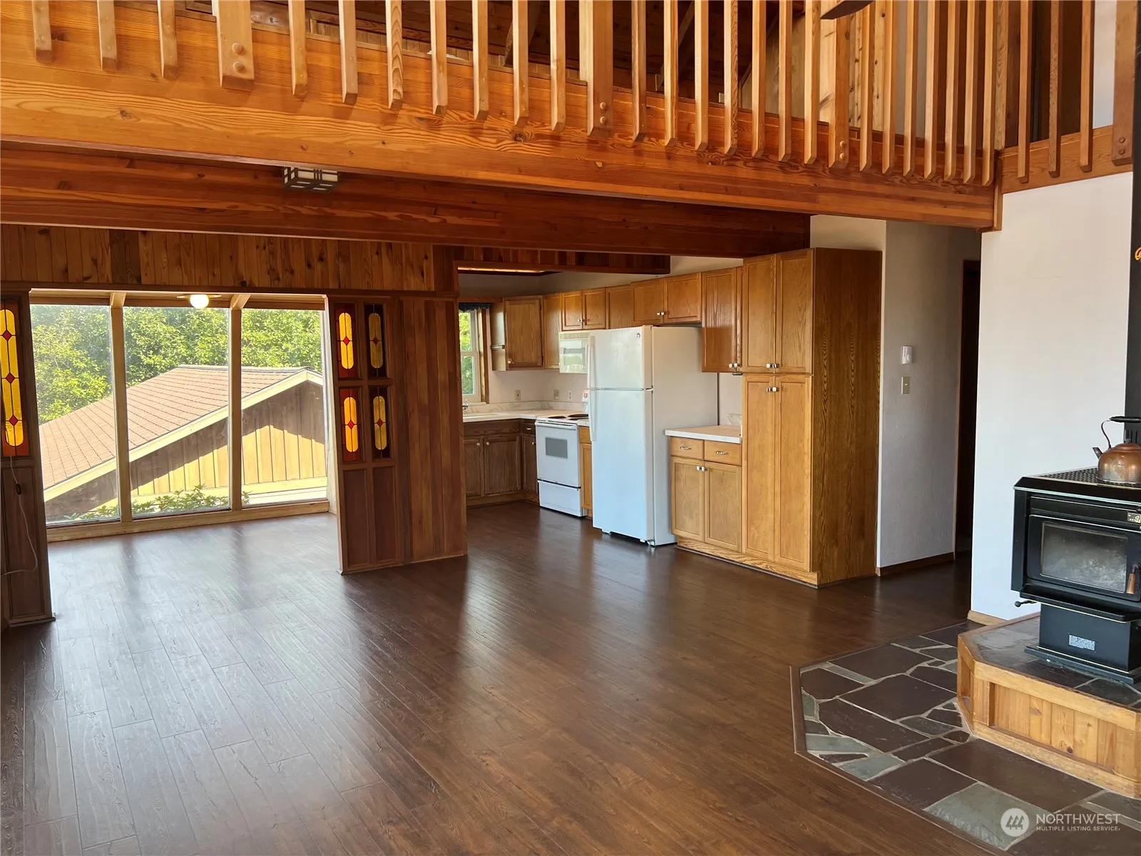 Double lot with dramatic ocean views from this unique home w/ warm wood interiors in the living room, kitchen, and dining room. New wood laminate floors on the main level add to the cozy feel. A wood stove keeps the home comfortable on cool nights. The kitchen has beautiful yet durable new countertops & deep sink. Two guest bedrooms & full bath w/ new tile floors located on the main floor. A full-length deck for sharing sunsets & summer entertaining. Third floor Primary Suite has forest views, private deck, remodeled 3/4 bath, sitting room w/ full ocean view. The ground floor has laundry room, family room, office, 1/2 bath, tool room & attached garage. Built 2012, large detached two car garage, heated shop, 816sqf. Life’s good at the beach!