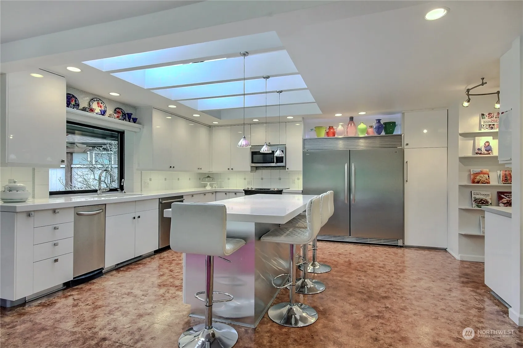 Stunning NW Contemporary home located between the 12th & 14th fairways of Oakbrook Golf Course. Tasteful updating throughout the light and bright spaces with beamed skylights off entry, living rm & kitchen. New LV Plank in kitchen/family & utility rm since photos were taken. Splendid views of the golf course from living/dining, family room & office. Main floor primary bedroom with luxurious bath and an oversized walk-in shower. Expansive patios with luscious landscaping, a gazebo with electricity plus an outdoor kitchen. Lots of extra parking for RV or toys. Attention to detail has gone into this beautifully updated gem. All living spaces have been utilized for max efficiency. Generator stays with home.