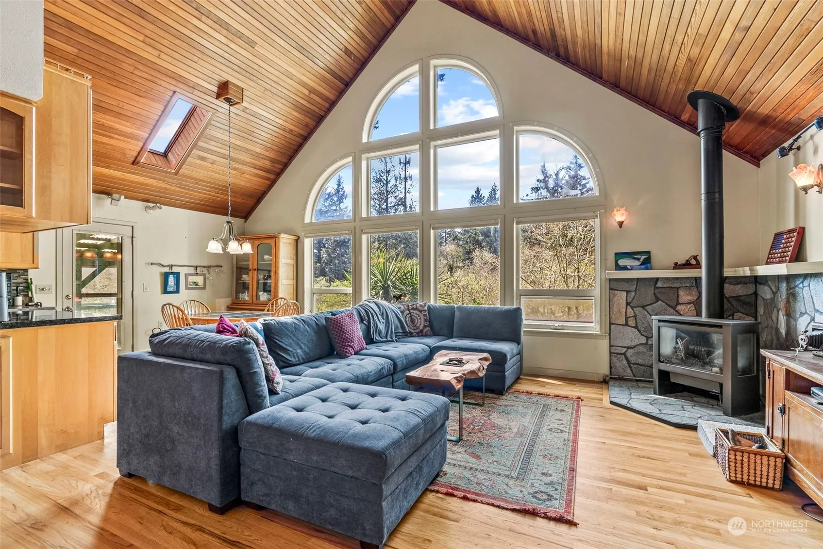 Unique home with lots of character! House is 1642 sq ft,3bedrooms3bath. Main floor has lots of windows, with vaulted ceilings. Primary bedroom, kitchen, living room and utility room with 1/2 bath are on main floor. Sunroom off of kitchen area that overlooks part of the 1.86 acres. Upstairs is the 2nd primary suite, with a full bathroom. Double garage, for plenty of parking and/or storage. Oversized 3rd bedroom is located in garage area. Home will come with some furnishings. Property is 2 tax parcels, that creates your own private getaway. Plenty of space to let your imagination roam. Additional access from 271st. Must have an appointment to view